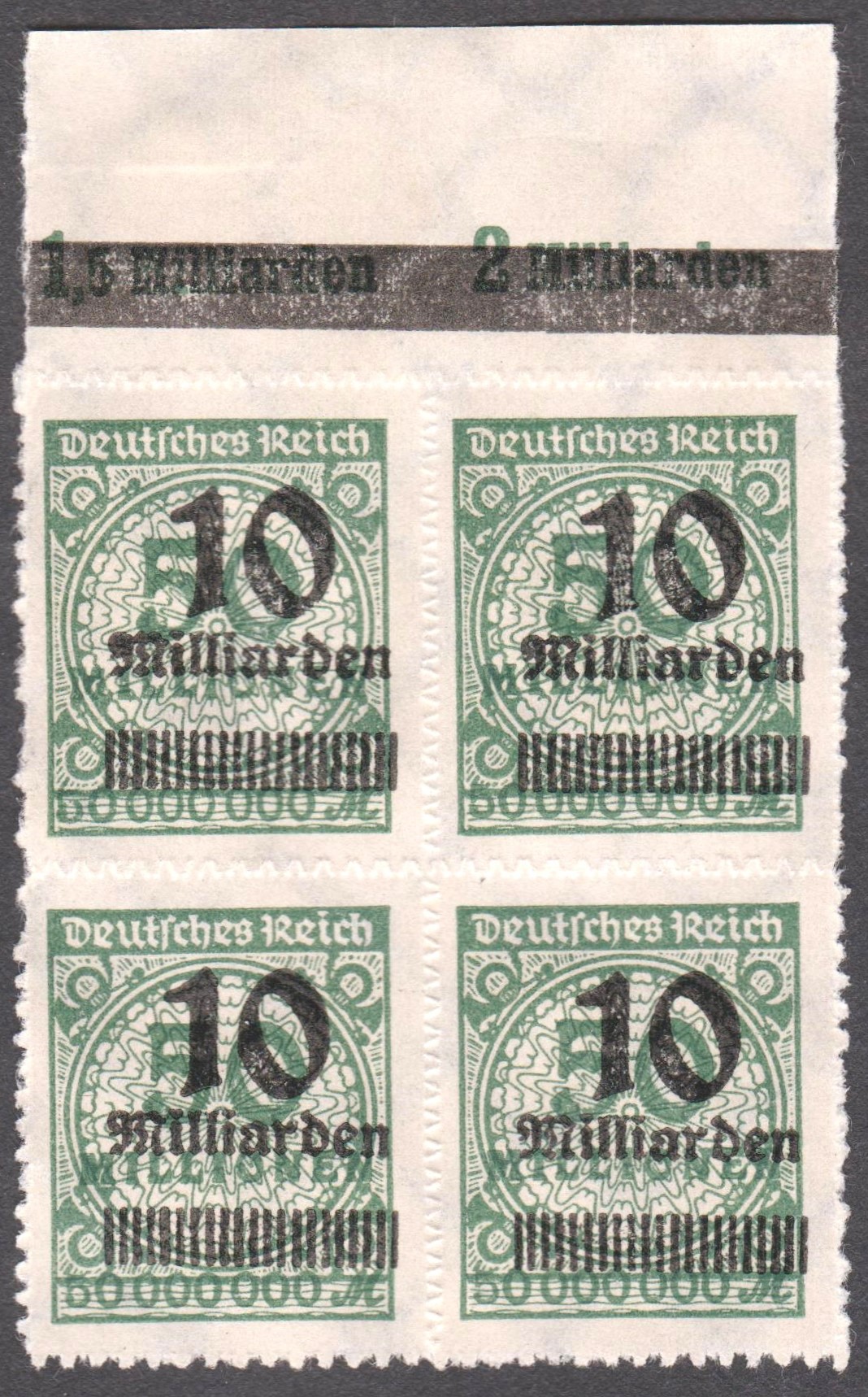 Deutsches Reich MiNr. 337 A P als Viererblock vom Oberrand: