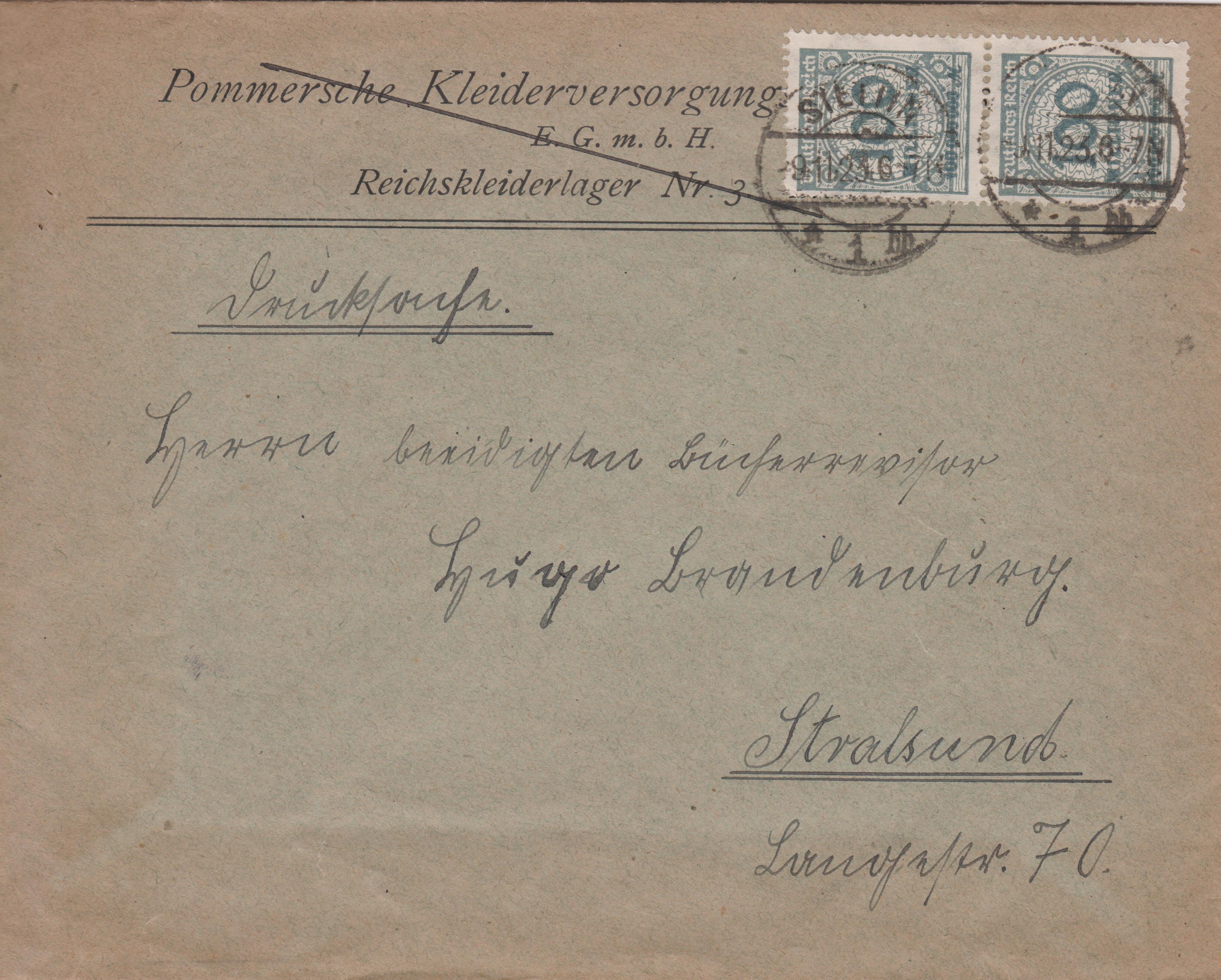 Die Sendung wurde mit durch Blaustift vermerkte "1050,000" Mark Nachporto belegt, das der Empfänger bei Empfang dieser Sendung zu zahlen hatte.
