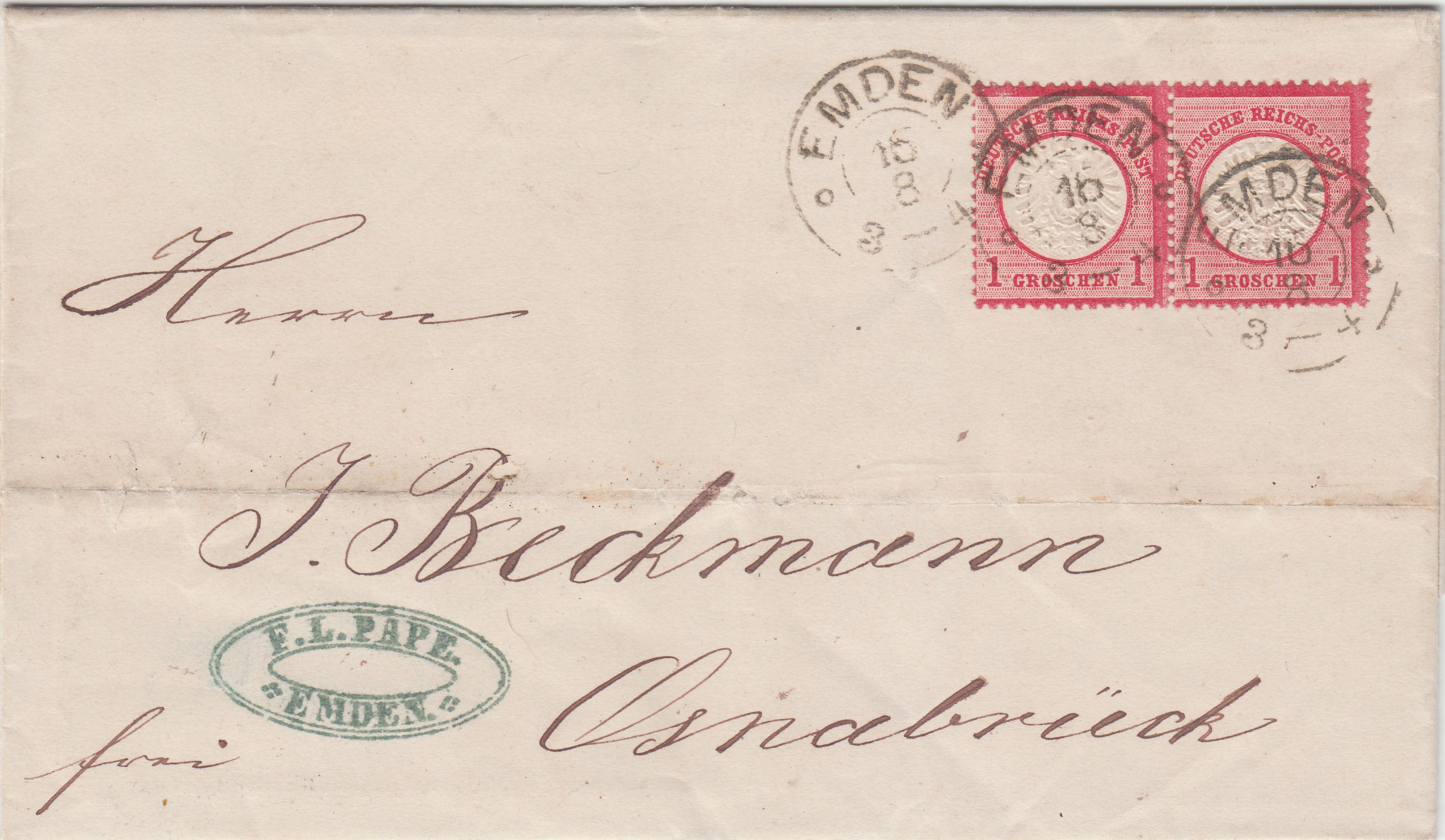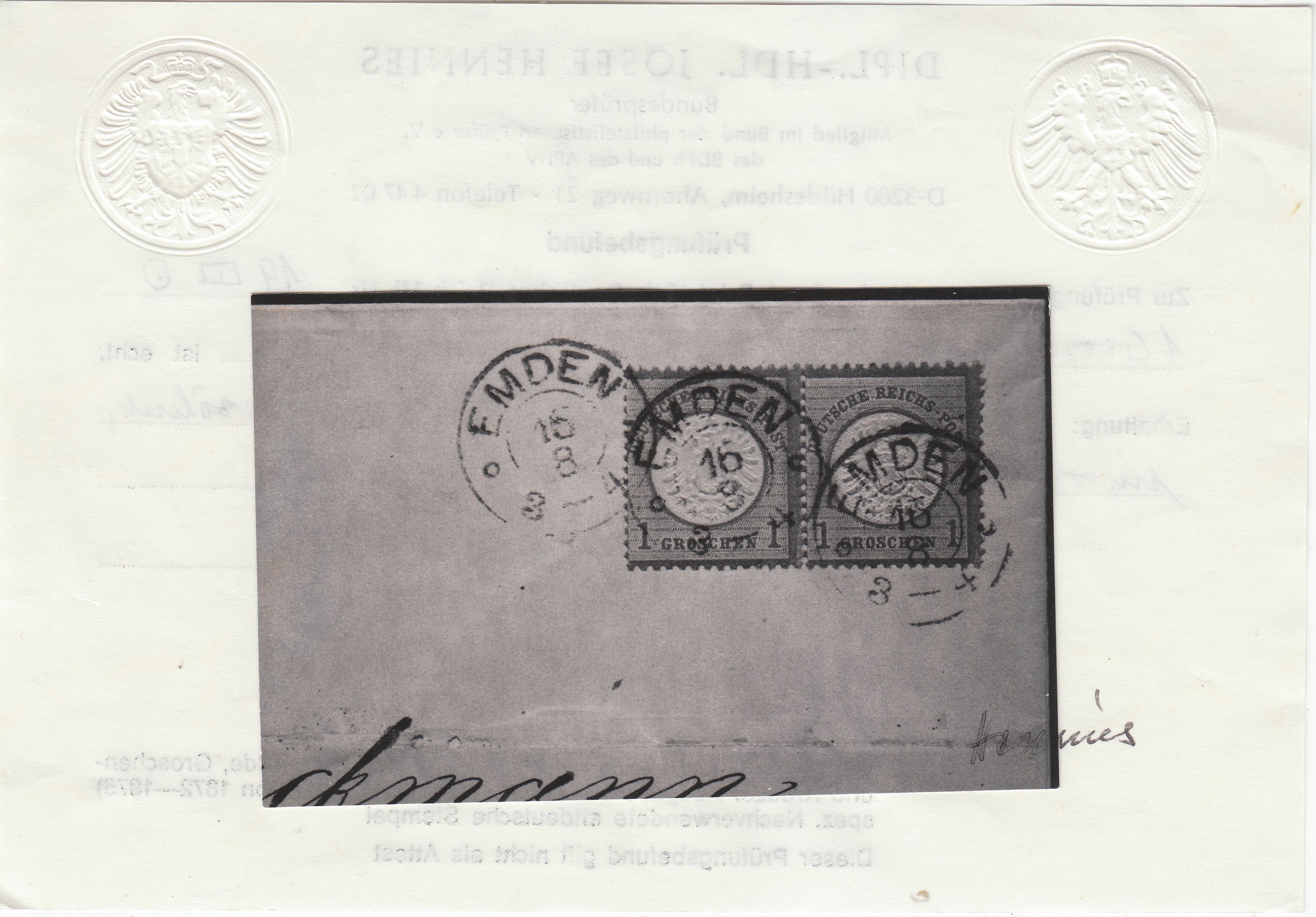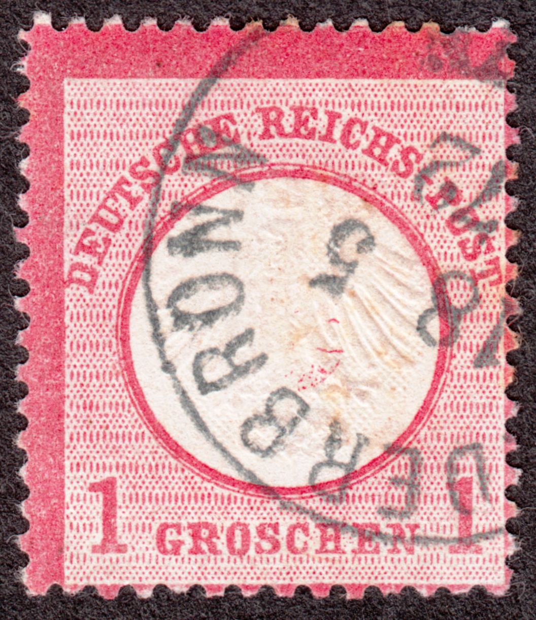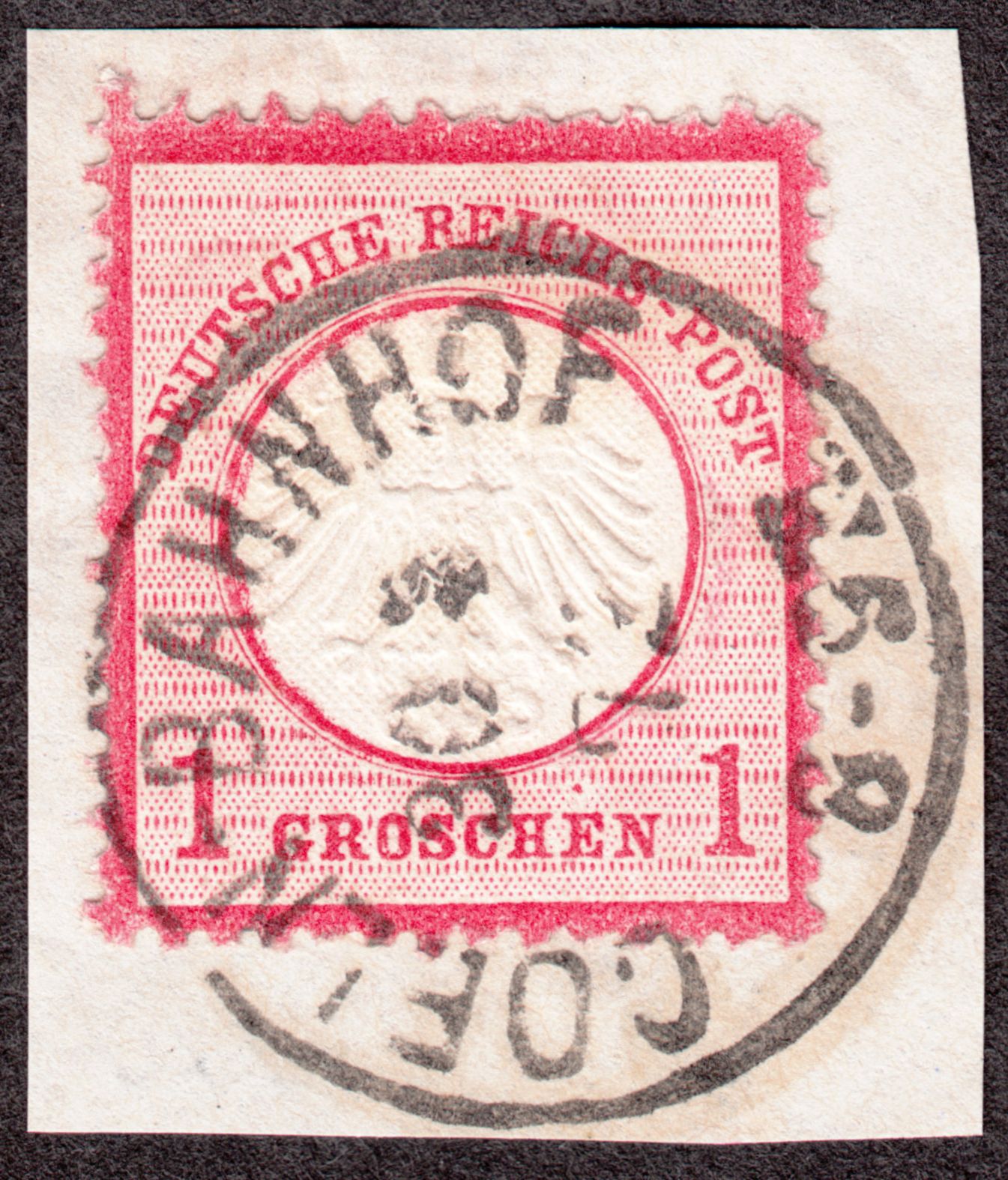 Hier folgt als zweiter Beifang aus dem Lot eine nach rechts und unten dezentrierte MiNr. 4 vom Oberrand, erkennbar an den weissen Zahnspitzen oben, entwertet am 18.05.1872 per Kreisstempel "NIEDERBRONN":
