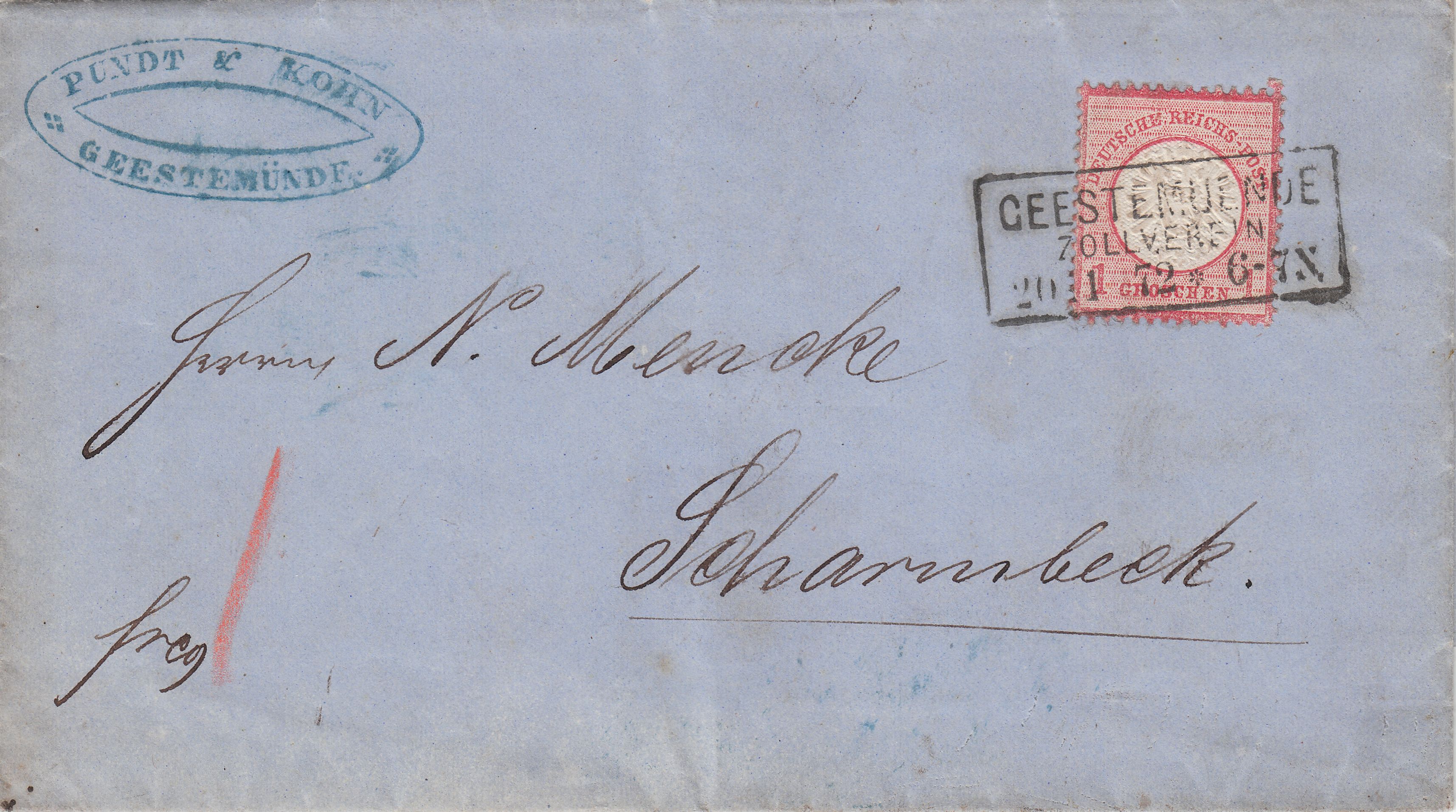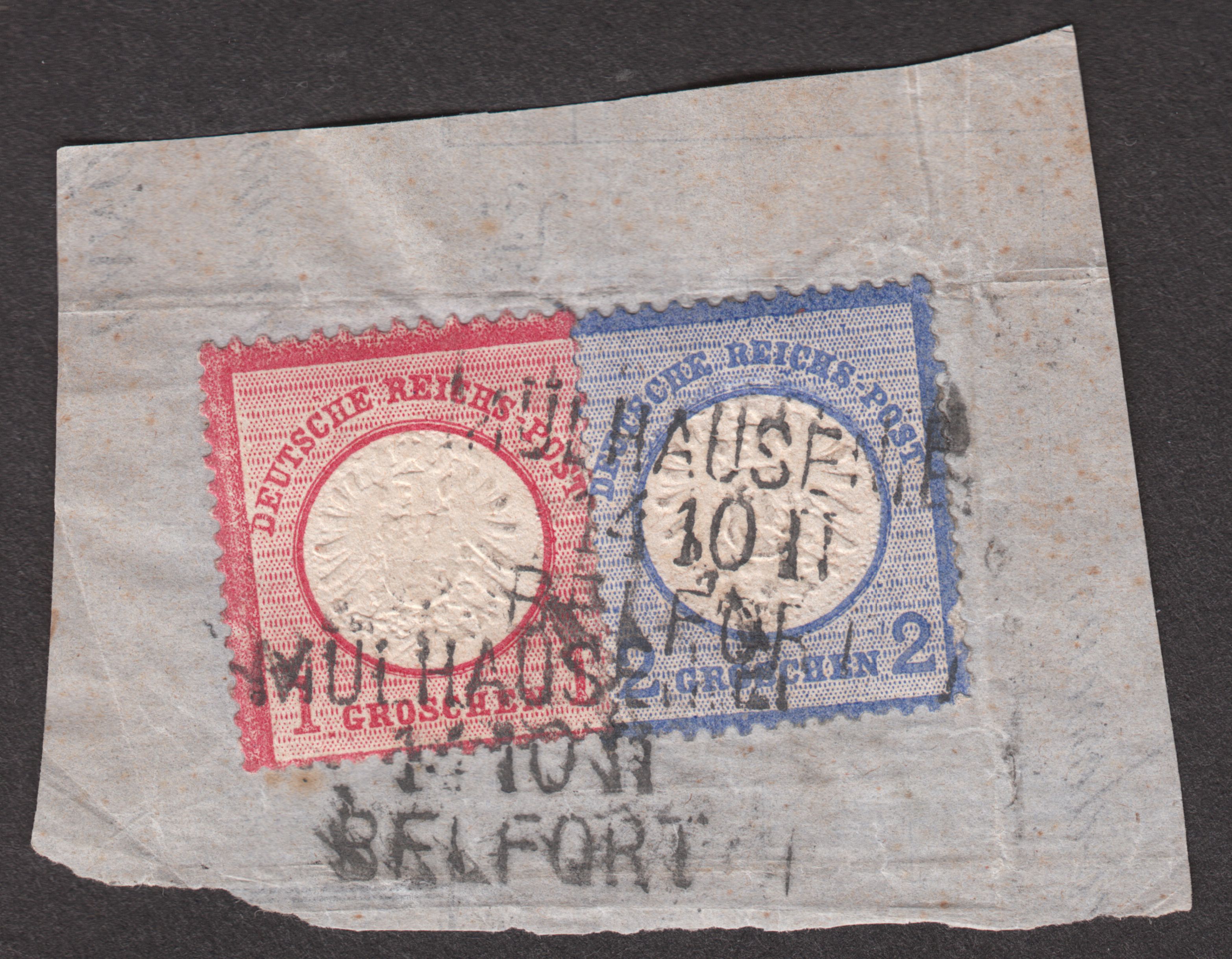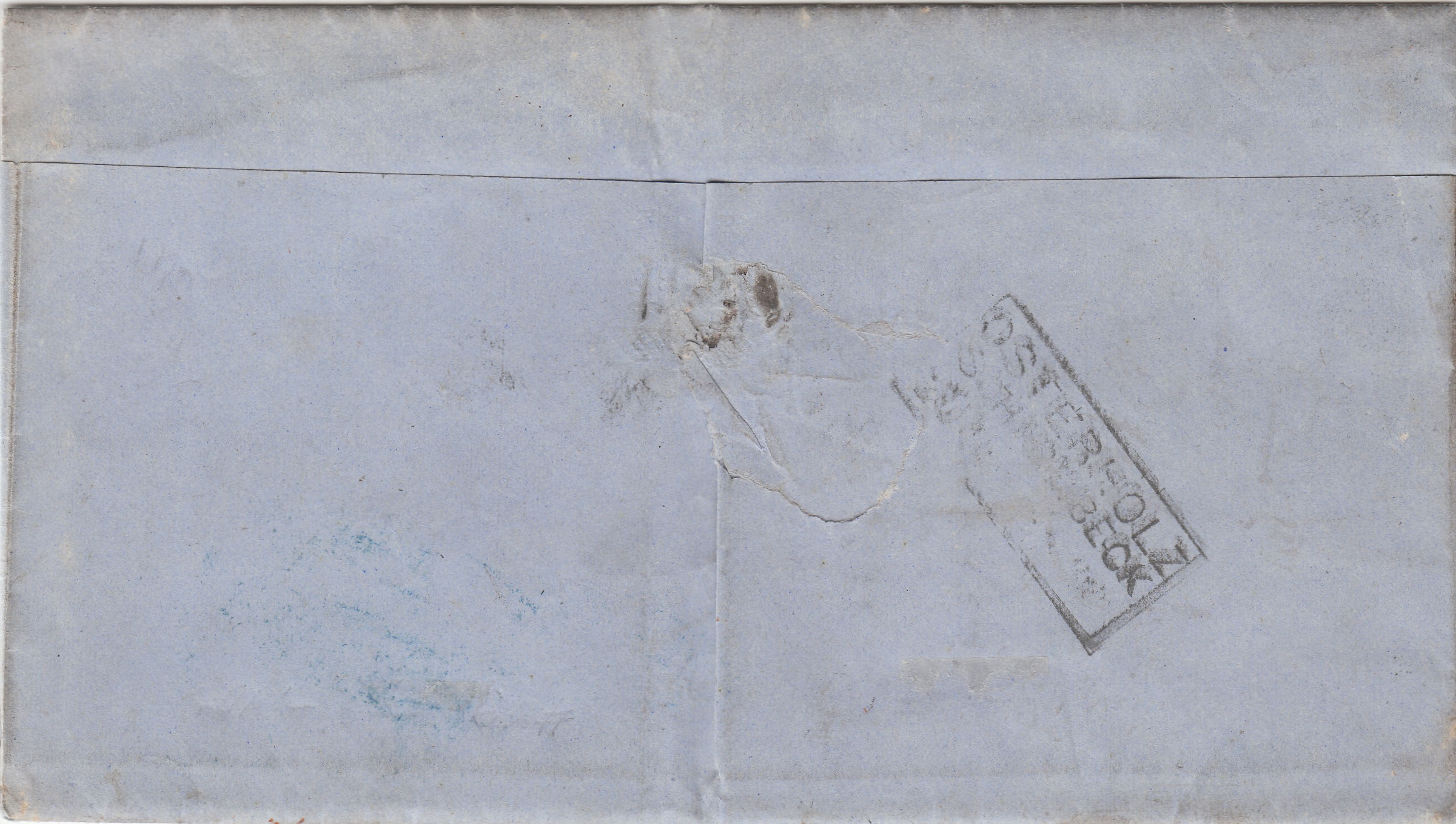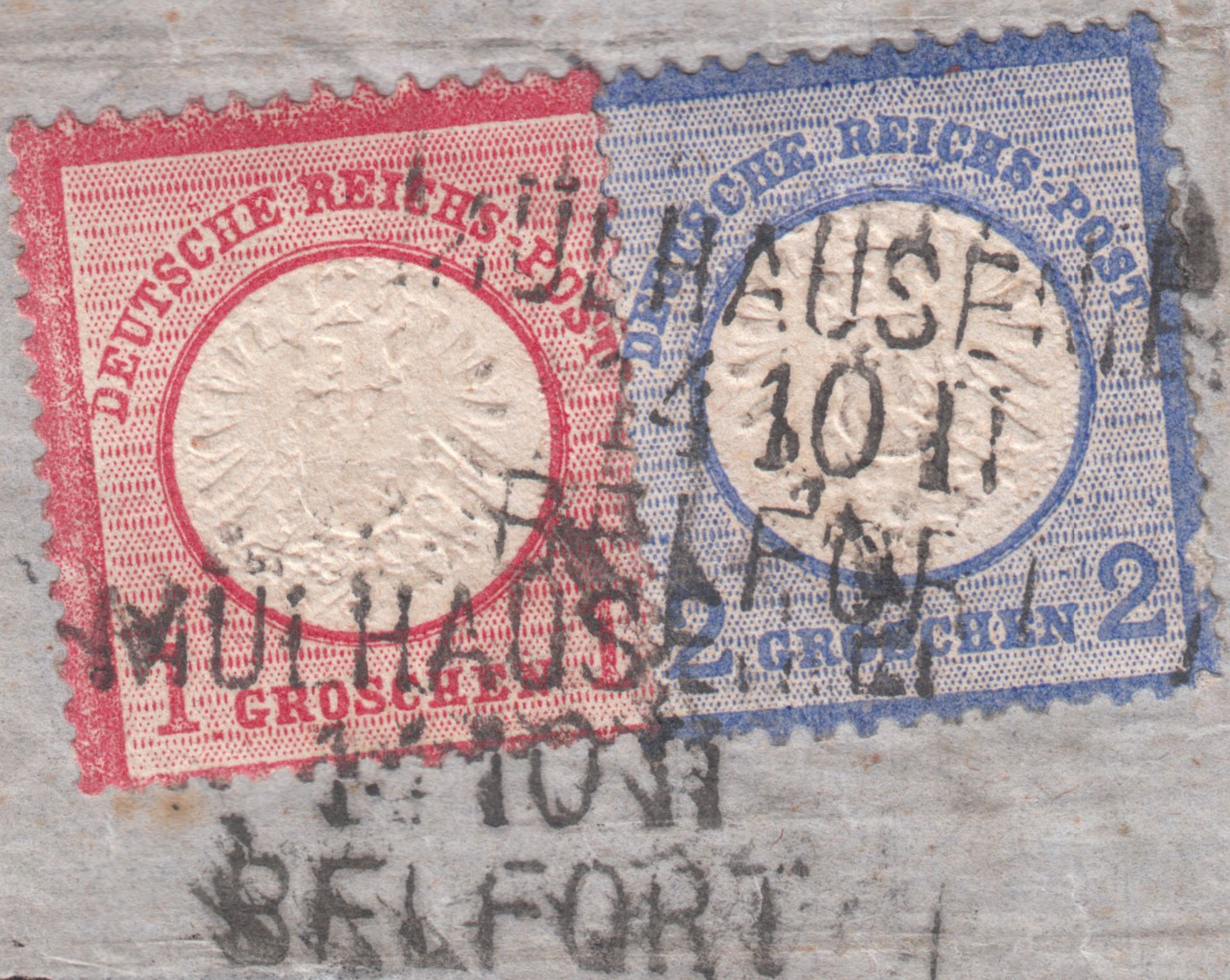 Auf der Vorderseite wurde am 14.07.1872 als Grenzübergangsstempel ein Zweikreisstempel "ITALIE GRENOBLE" in Rot abgeschlagen.