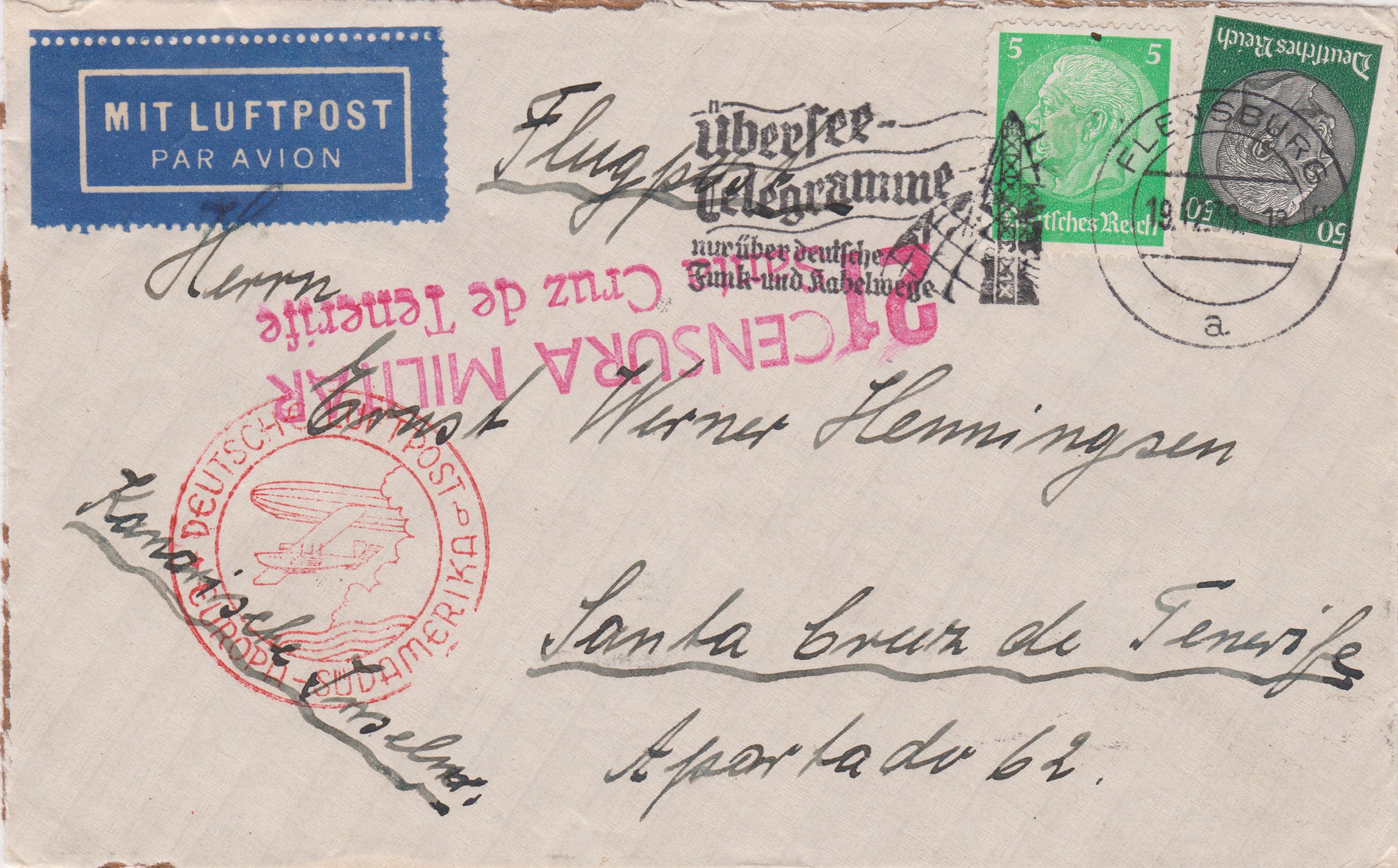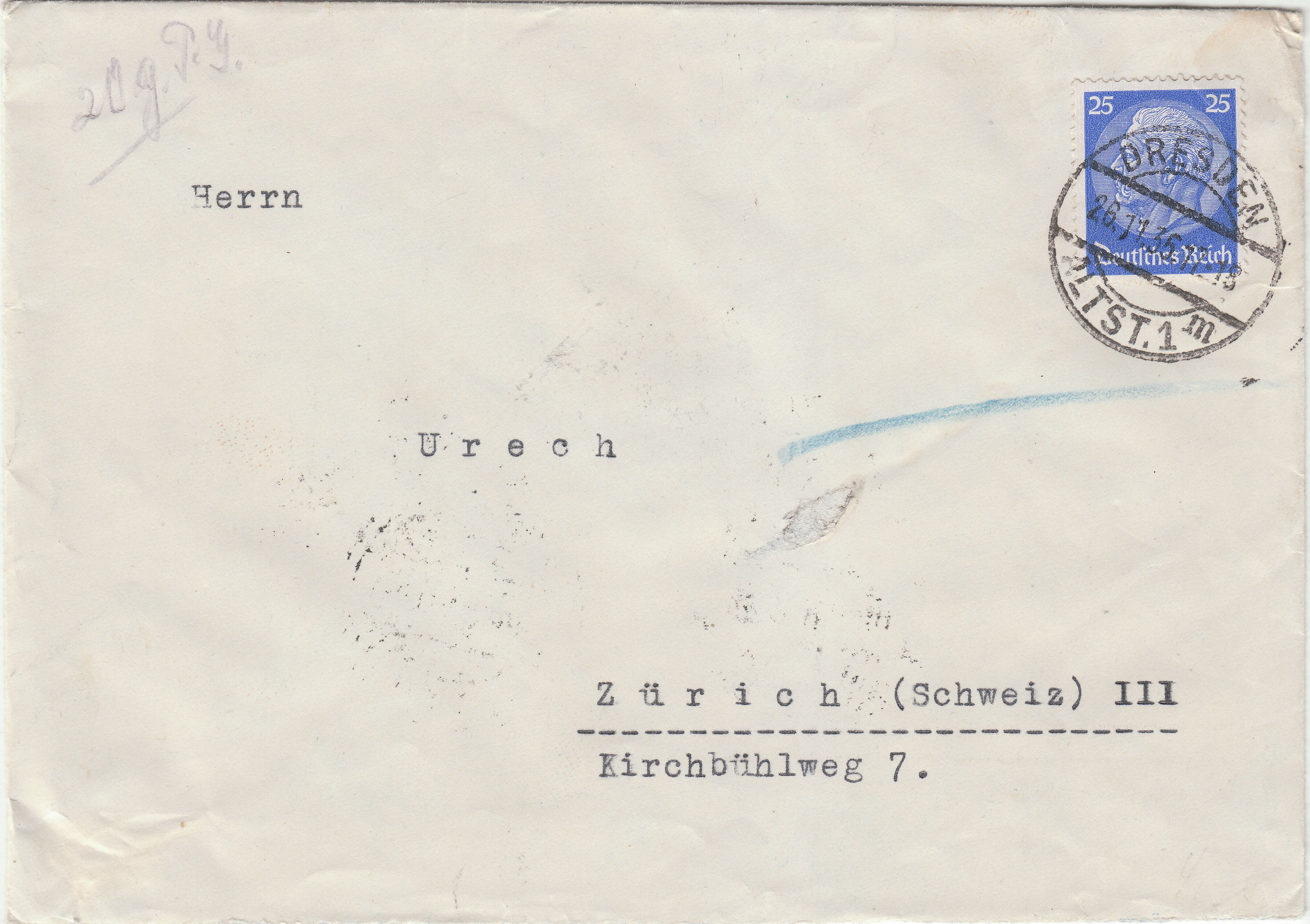 Nur für gewöhnliche Briefe Zuschlagsgebühr 5 Pfg. als Freimarke auf dem Brief.