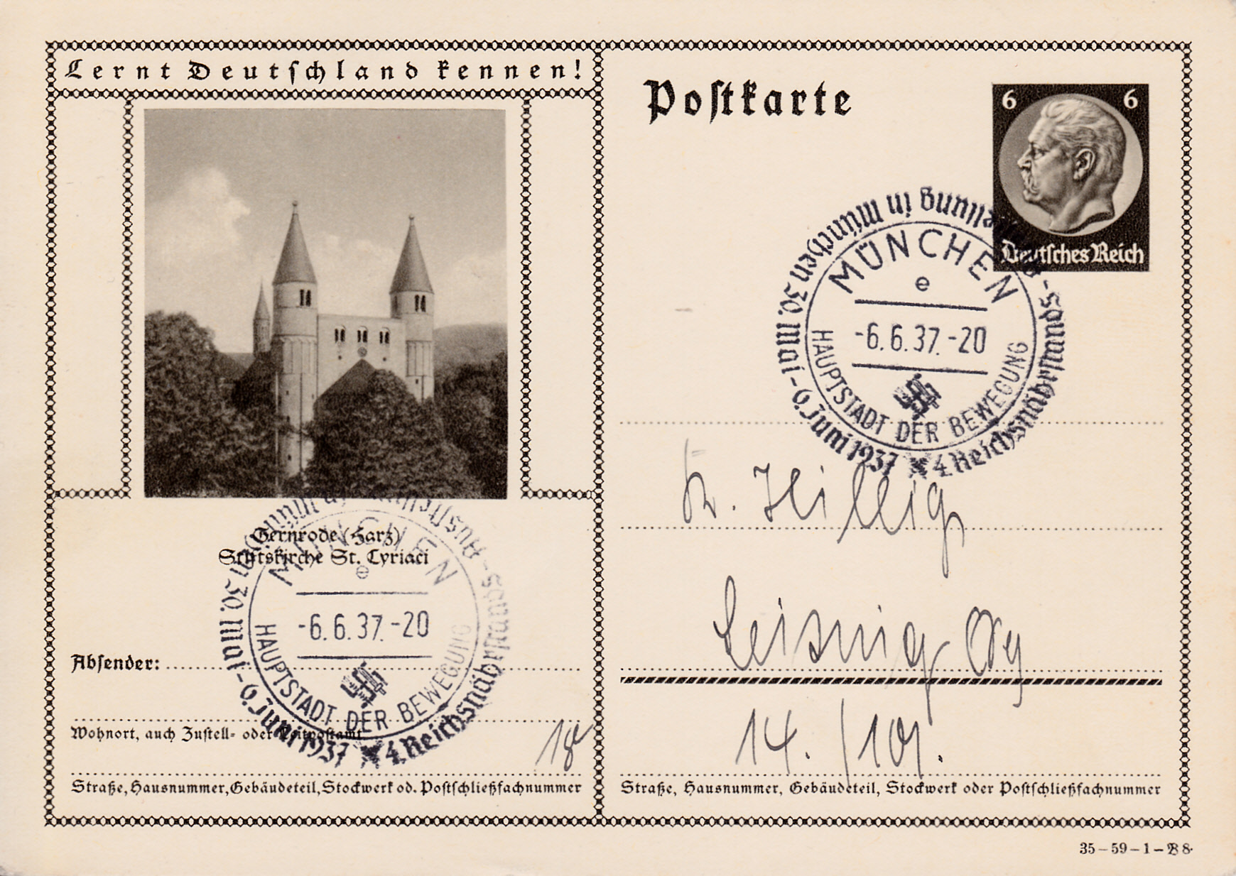 Die Stiftskirche in Gernrode lädt auf dieser Karte (Serie 59 Bild 8) nach Gernrode ein.