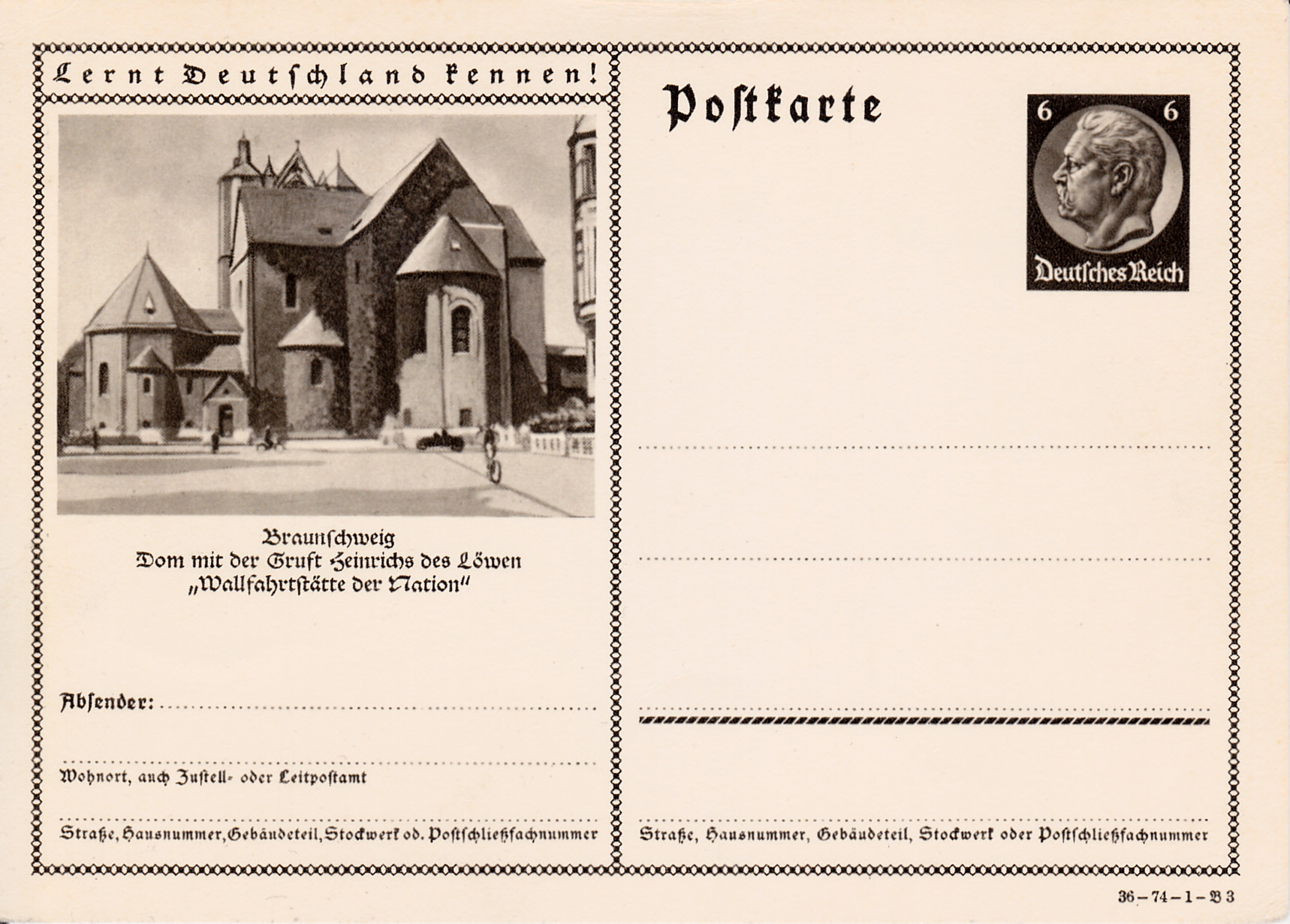 Es folgt heute eine Karte (Serie 74 Bild 3) mit dem Braunschweiger Dom. Er wurde 1173 als Kollegiatstiftskirche von Heinrich dem Löwen, Herzog von Bayern und Sachsen, gegenüber seiner Burg Dankwarderode "zur Ehre St. Blasius’ und St. Johannis des Täufers" gestiftet und von ihm zu seiner Grablege und der seiner zweiten Gemahlin Mathilde von England bestimmt. 1226 wurde der Dom geweiht. Vor dem Marienaltar befindet sich das Grabmal Heinrichs des Löwen und seiner zweiten Ehefrau Mathilde.