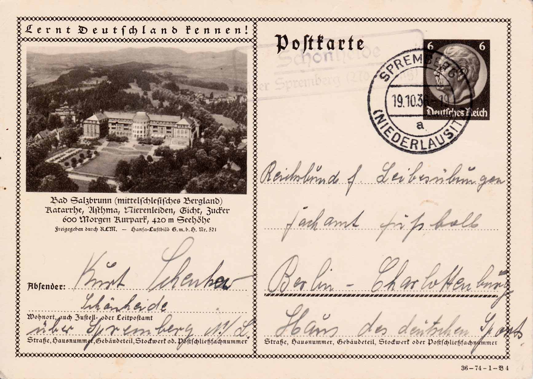 Auf dieser Karte (Serie 74 Bild 4) zeigt Bad Salzbrunn das gleiche Foto wie auf der Karte (MiNr P 232/104) aus dem Jahre 1934.