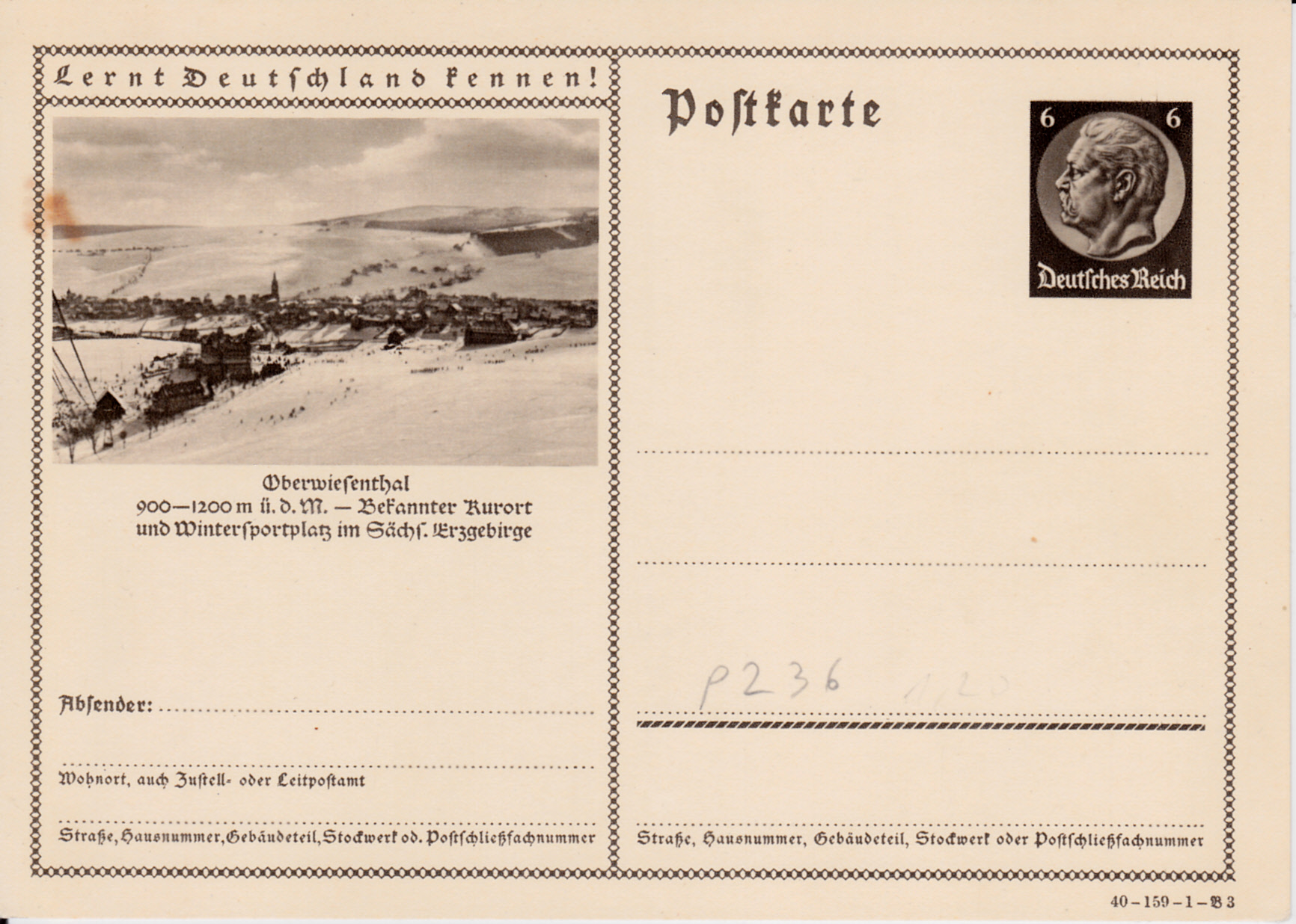 Bildpostkarten Hindenburg P 236 Ausgabe 1940
