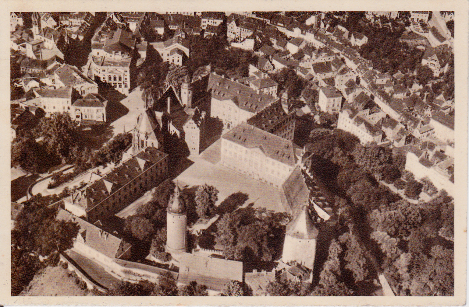 Das Schloss in Weimar von oben zeigt uns die Karte mit Bild 156.