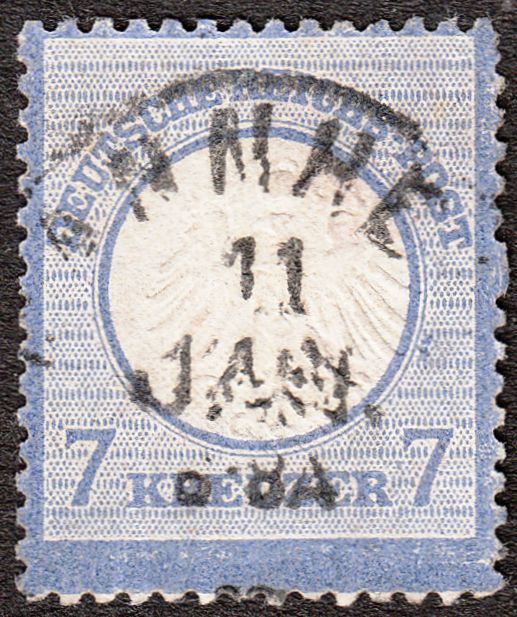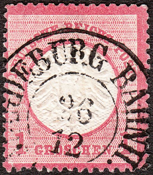 Hier eine EF der MiNr. 18, adressiert nach "Halle a/S" an "Fräulein Geschwister Jüdel", entwertet am 07.01.1874 per nachverwendetem NDP-Kreisstempel PLAUEN, Feuser NDP 779: