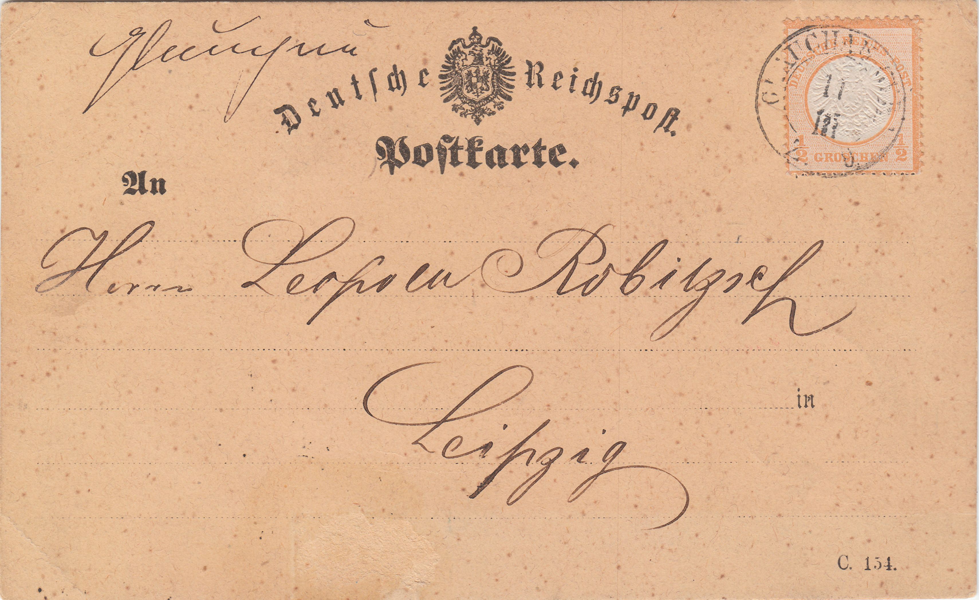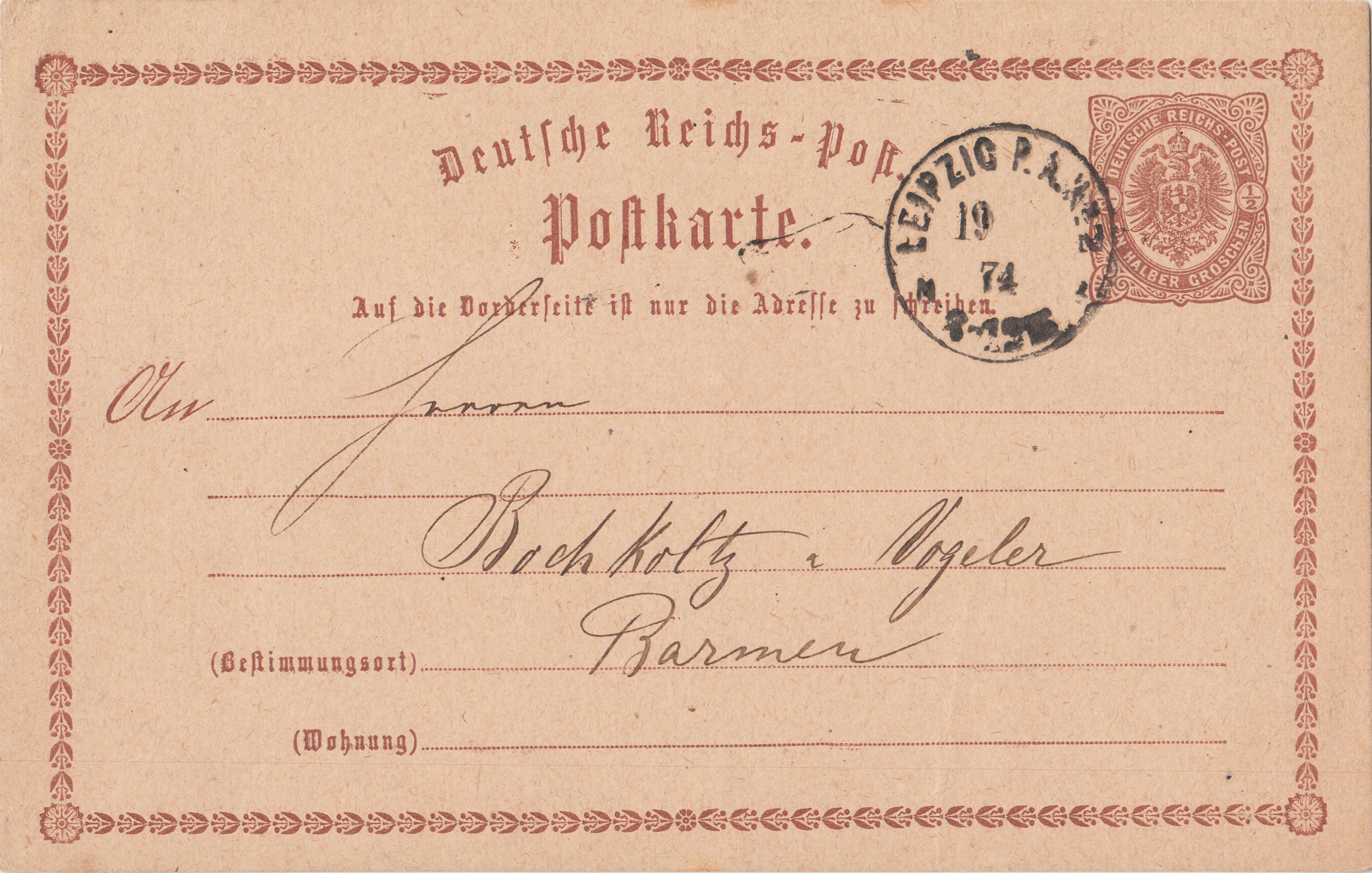 Hier eine Ganzsache MiNr. P1, am 19.05.1874 entwertet per Kreisstempel "LEIPZIG P. A. No. 2. N 3":
