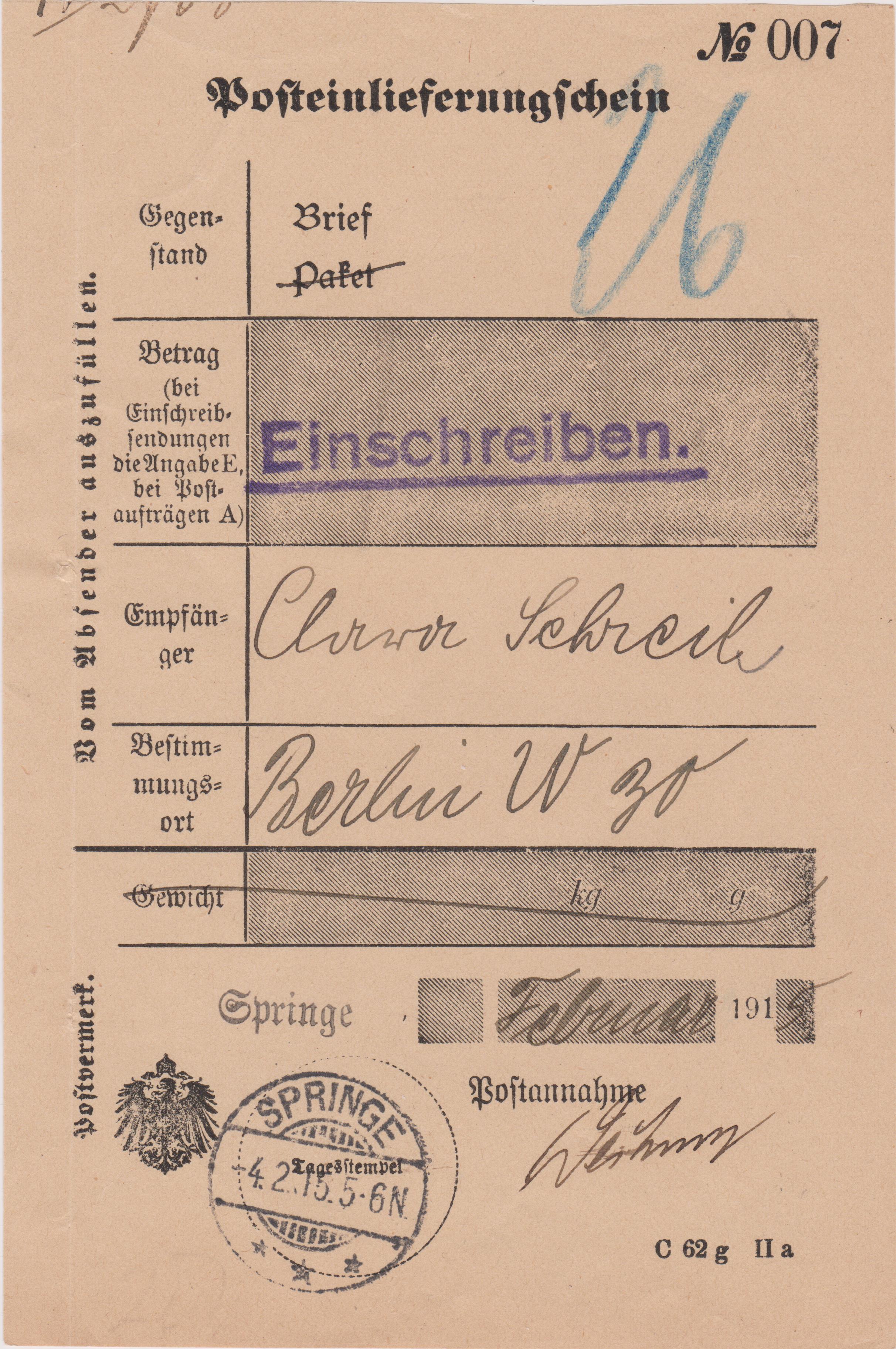 Bei der Einlieferung dieses Briefes erhielt der Absender 25 Silbergroschen als Postvorschuß, worauf ein violetter Stempel "Auslagen." hinweist. Als Porto für Postvorschußbriefe galt die Beförderungsgebühr wie für Wertbriefe, hier 1 1/2 Groschen für eine Entfernung von bis zu 5 Meilen, plus 1/2 Groschen je angefangenem Taler an Postvorschuß bei einer Mindestgebühr von 1 Groschen, die in diesem Falle erhoben wurde.