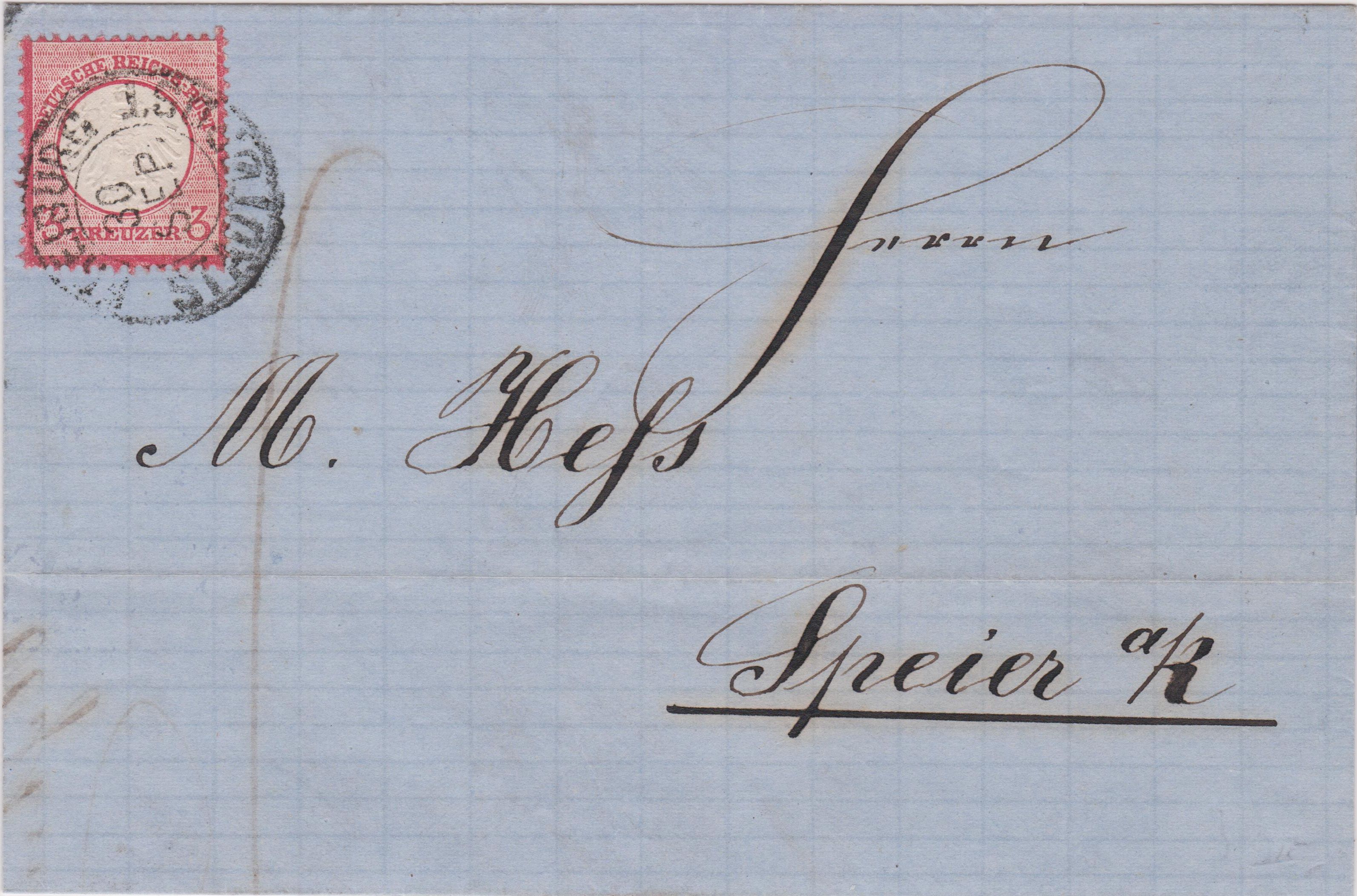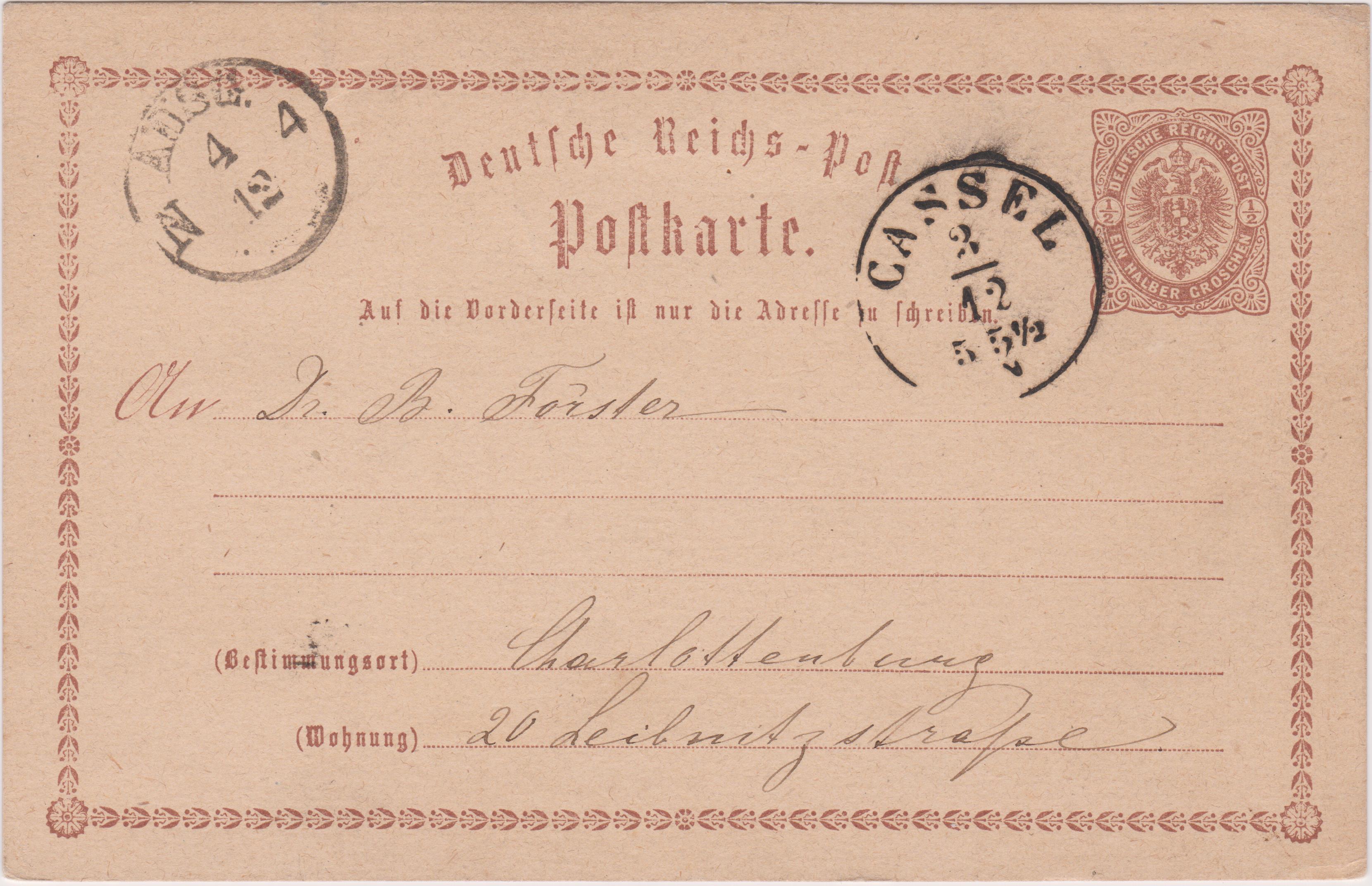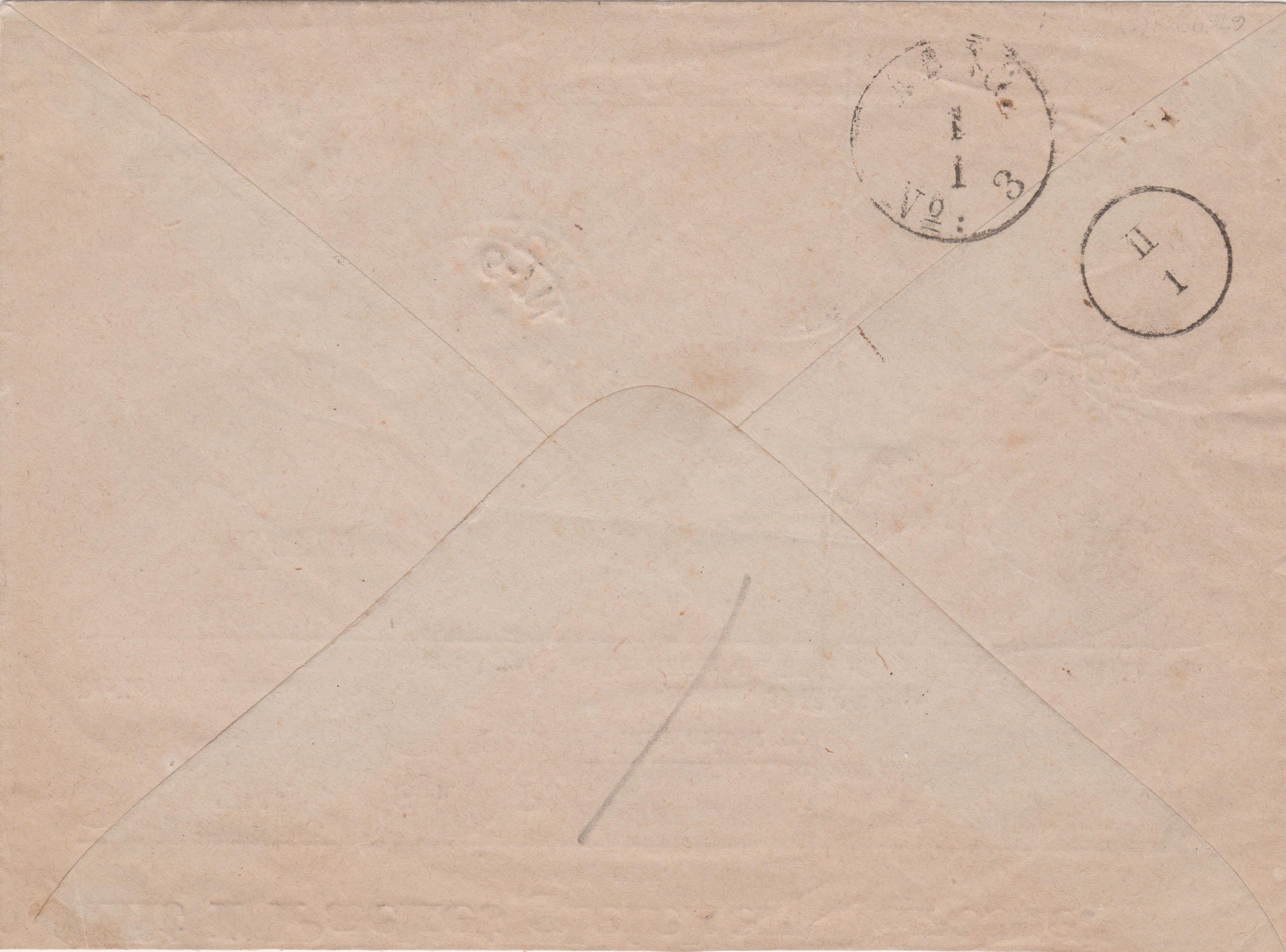Der Brief erreichte seinen Bestimmungsort Erfurt am 01.01.1874, was ein rückseitiger Ausgabestempel dokumentiert: