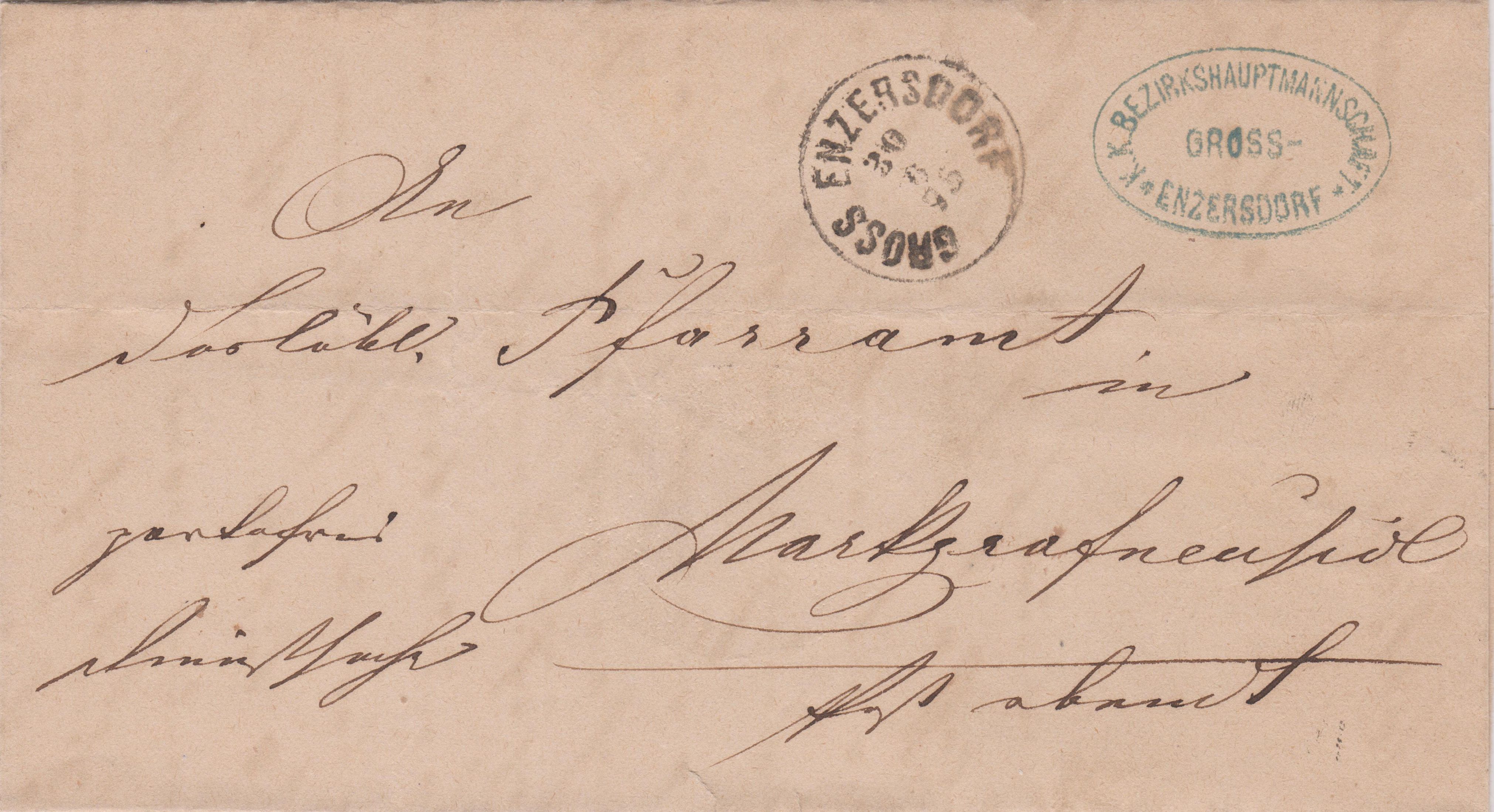 Das zu diesem Begleitbrief gehörige Paket wog "4 Pfund" und wurde franco aufgegeben, wofür "6 1/2" Groschen in Rotstift als bezahltes Porto vermerkt wurden.