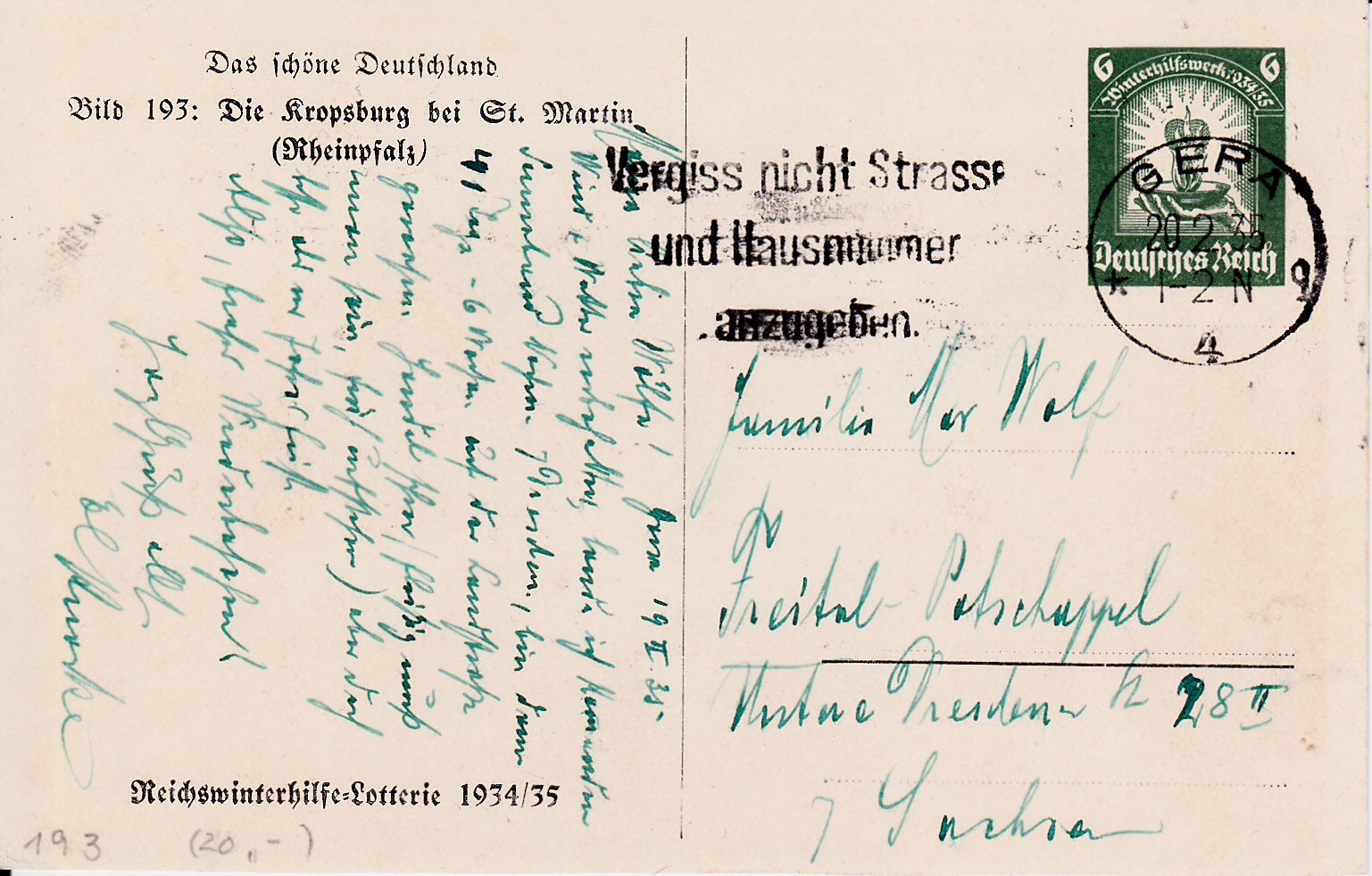 Sonderpostkarten für das Winterhilfswerk P 254