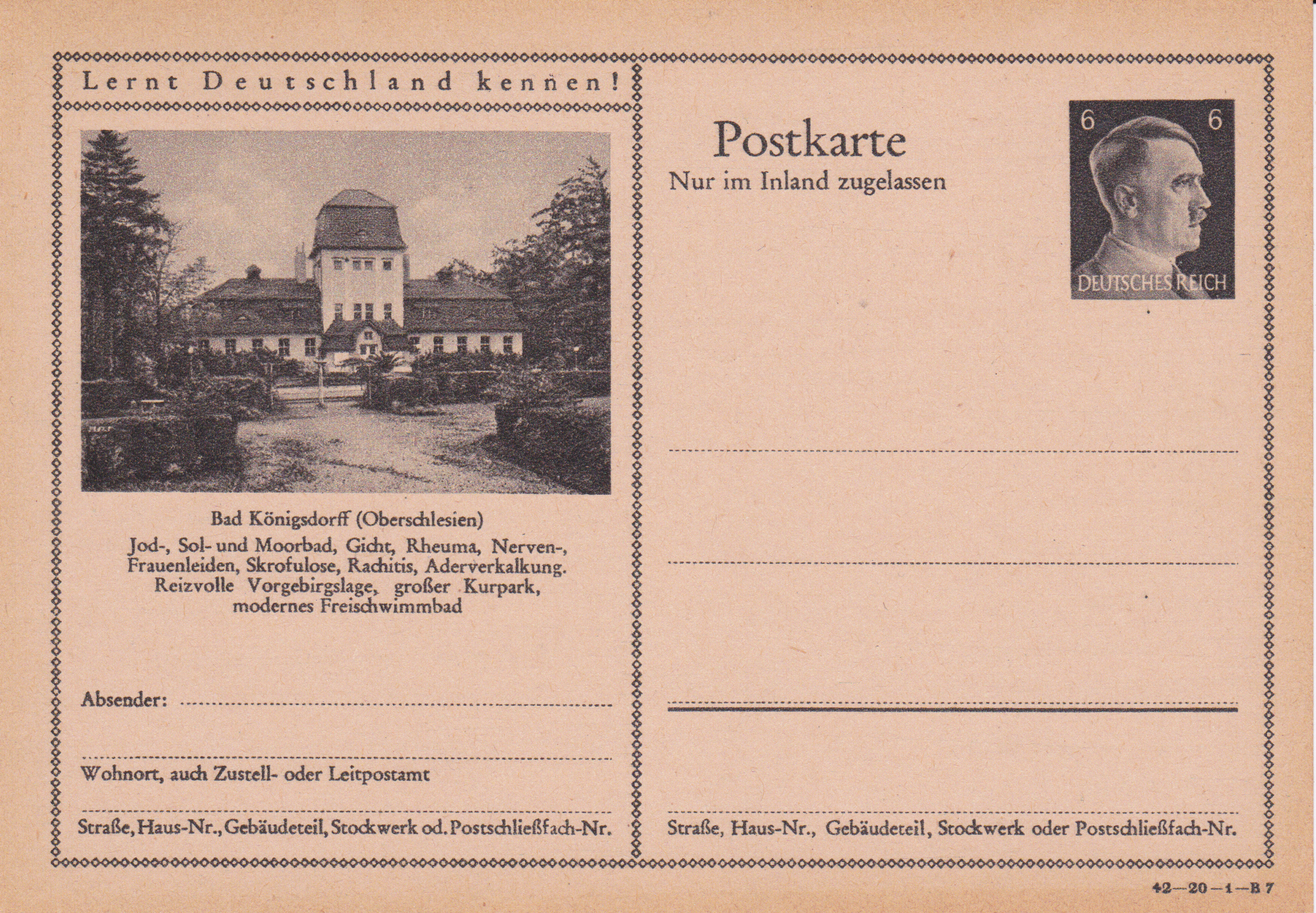 Für Bad Königsdorff gibt es noch eine zweite Bildpostkarte (Serie 20 Bild 7) mit anderer Abbildung.
