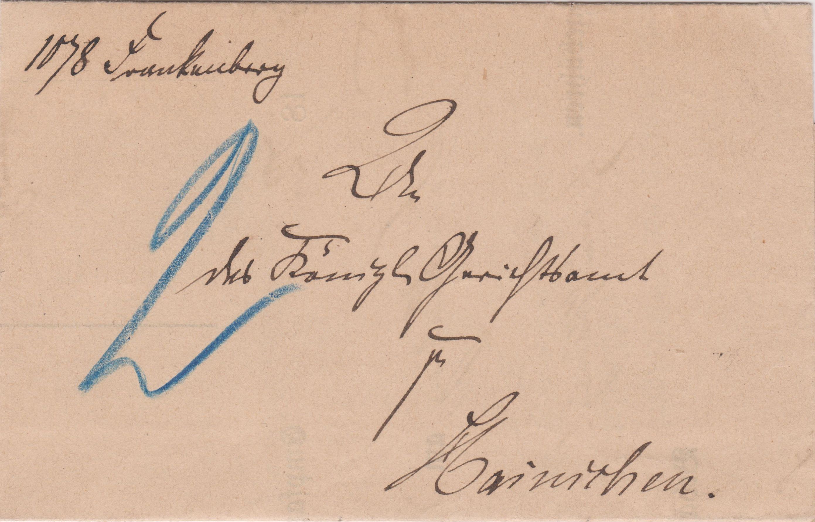 Als Ankunftstempel diente in Bayern ein Kreisstempel "ASCHAFFENBURG", Monat in Buchstaben "JUN.", Stundenangabe "4-5", ohne Jahresangabe.