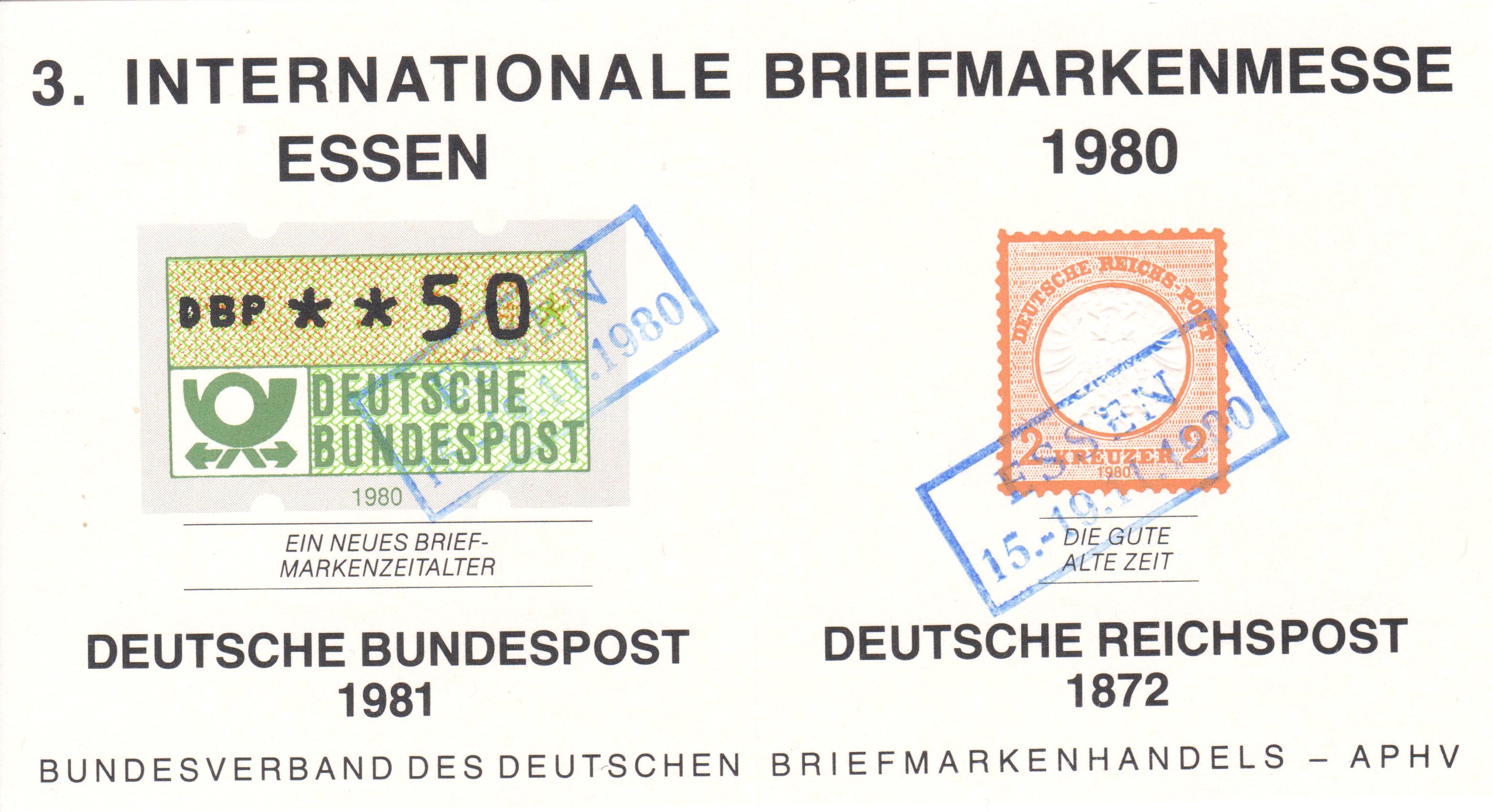 Diese Brustschildmarke mit der Jahreszahl 1980 unten ist eine Vignette, aufgelegt aus Anlaß der "3. INTERNATIONALE BRIEFMARKENMESSE ESSEN 1980":