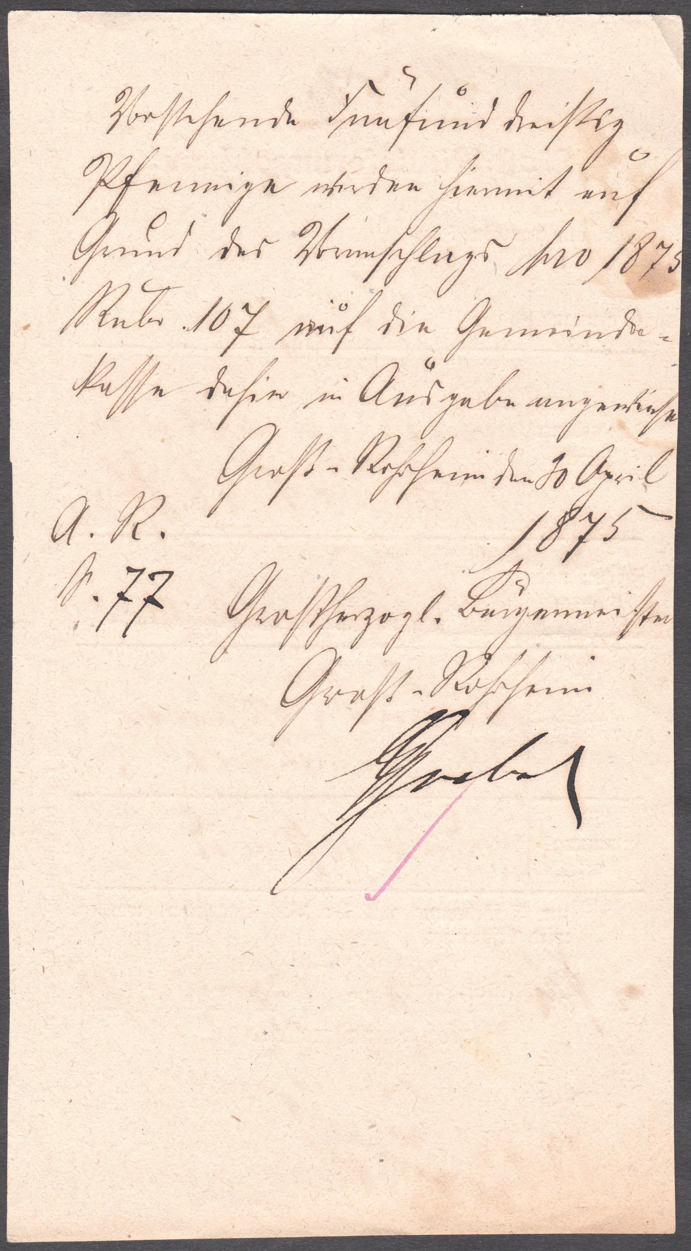 Post-Einlieferungsschein vom 30.04.1875 aus Darmstadt: