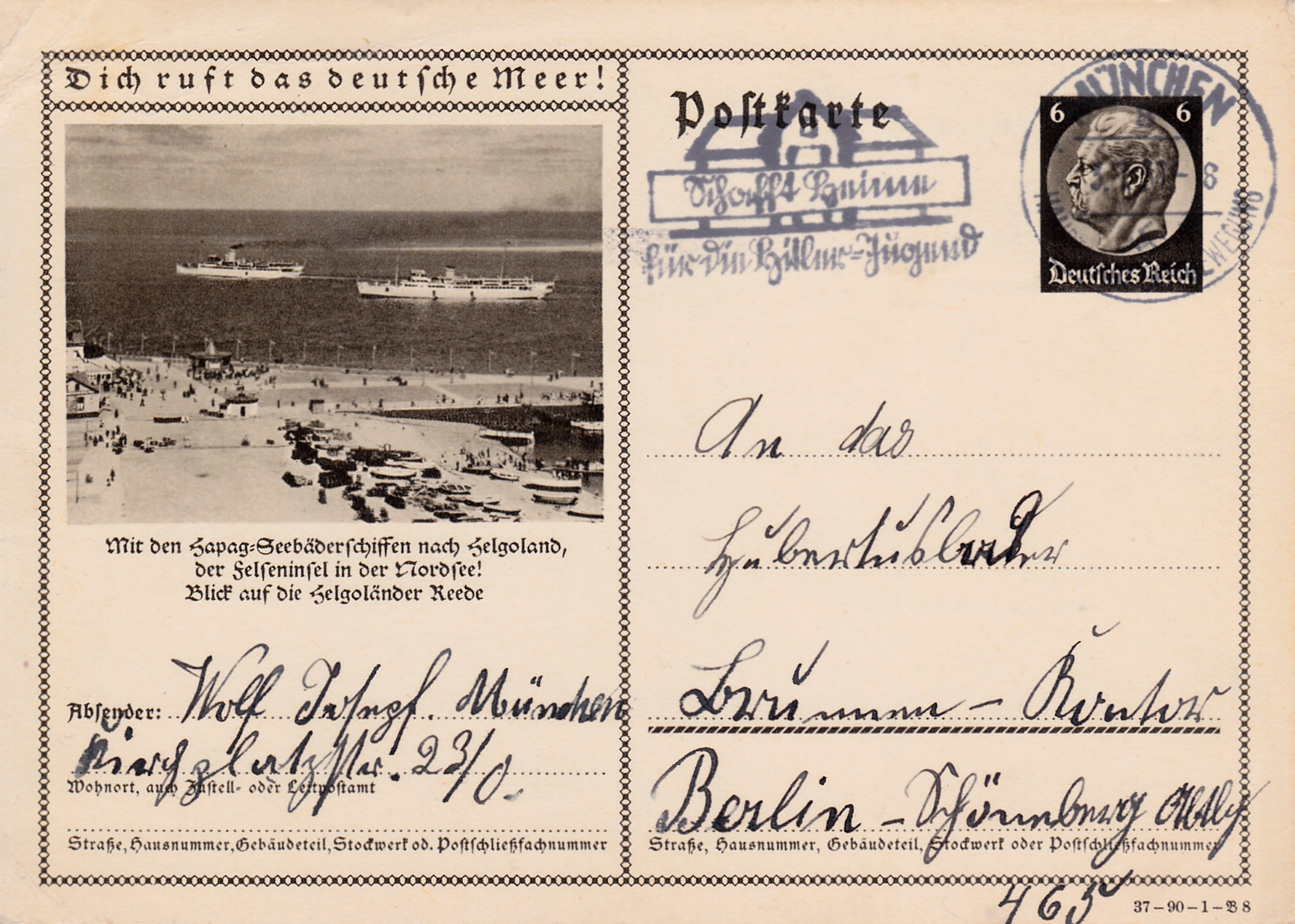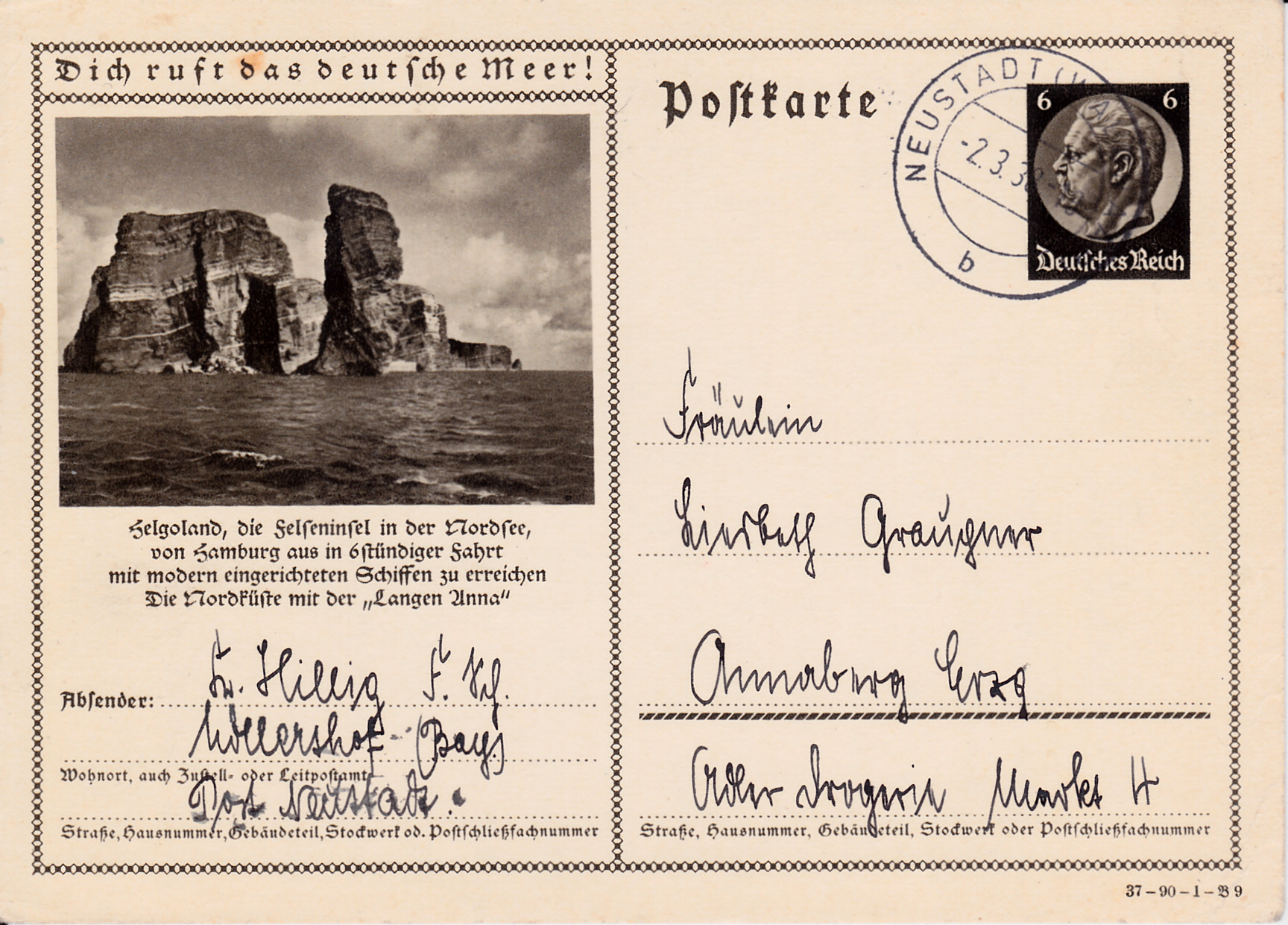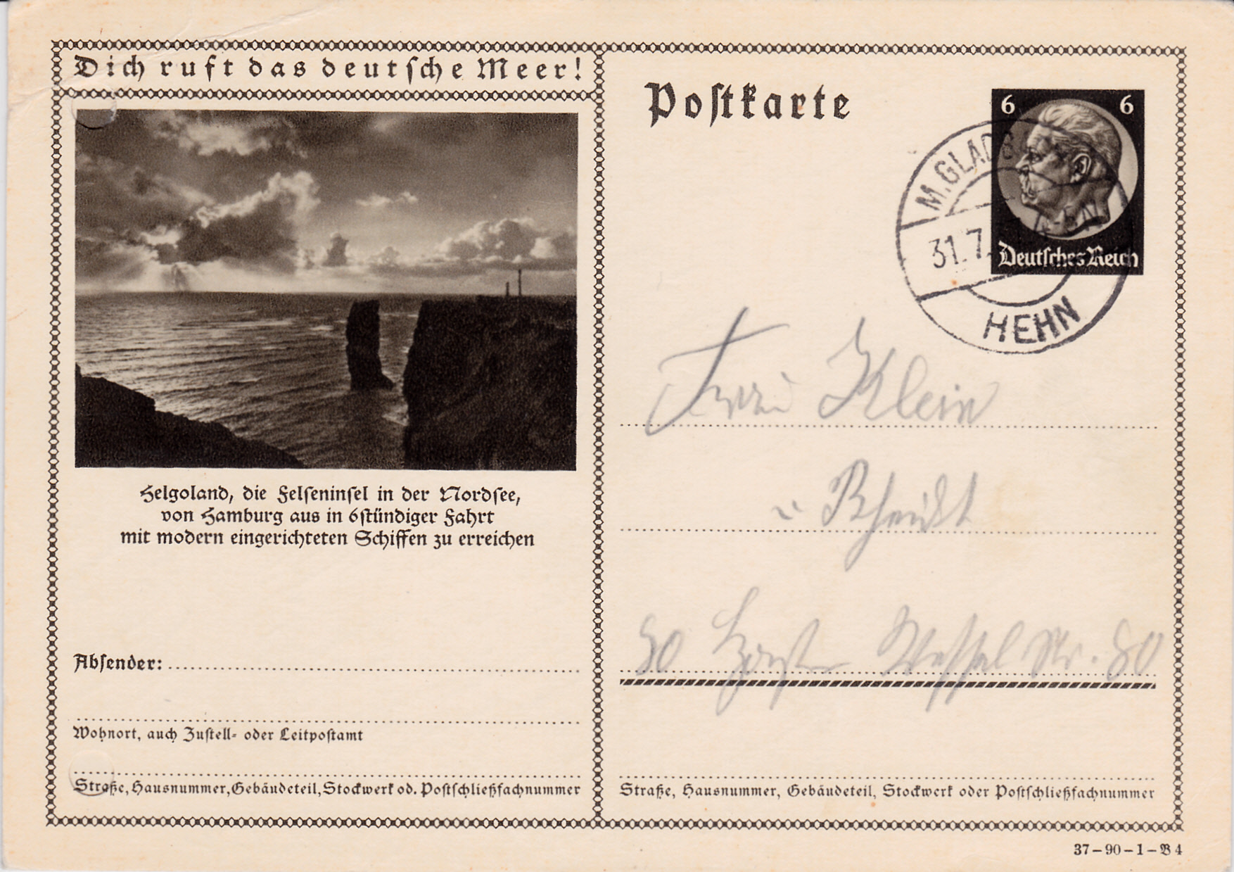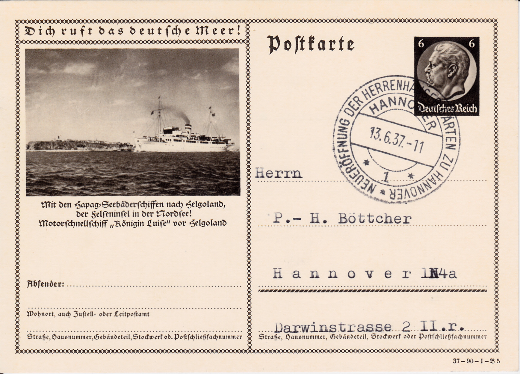 Auch die nächste Karte (Serie 90 Bild 4) dieser Serie wirbt mit der Erreichbarkeit der Insel Helgoland in 6 Stunden.