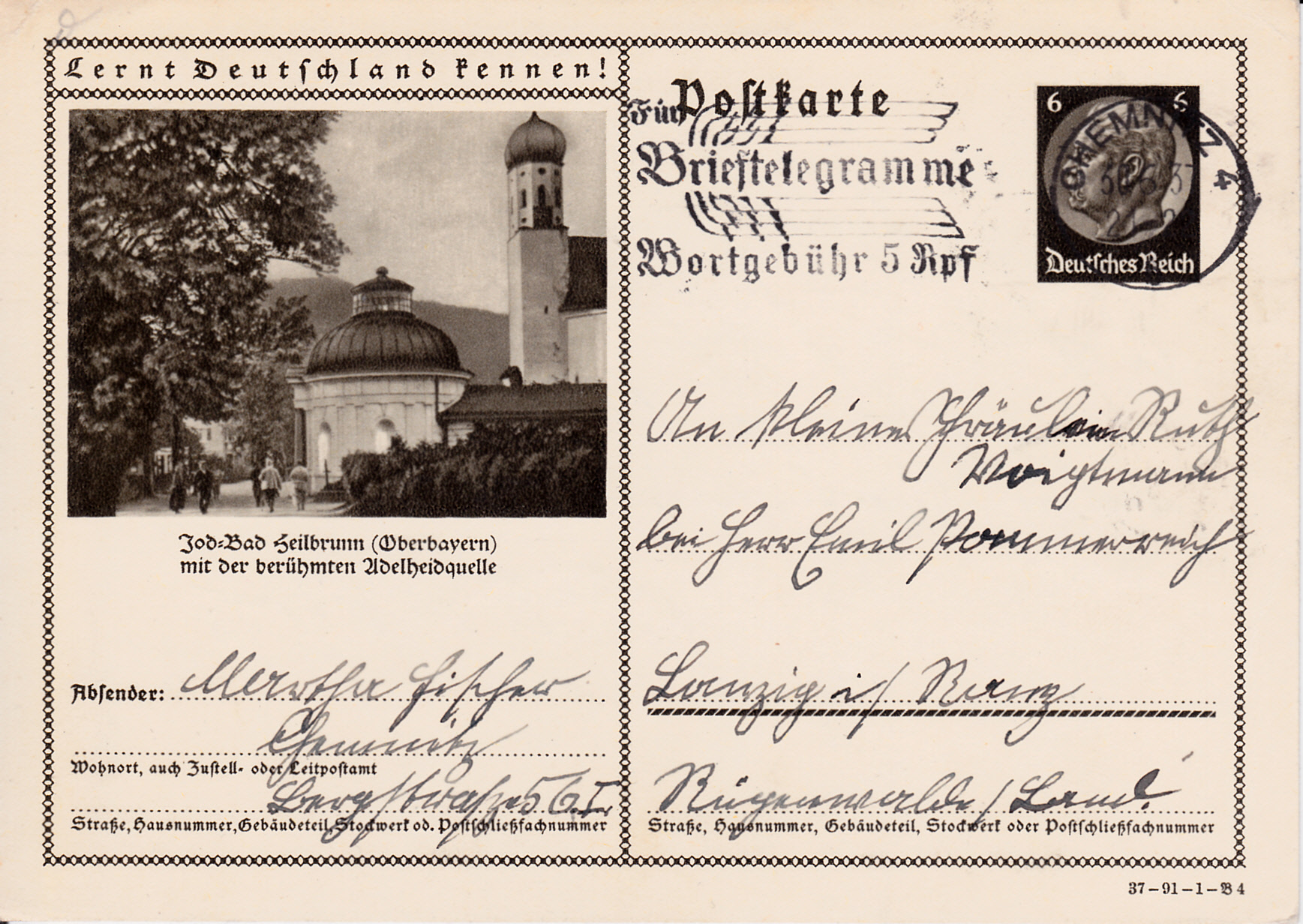 Bad Heilbrunn (Oberbayern) wirbt mit der Abbildung auf dieser Karte (Serie 91 Bild 4) für seine Adelheidquelle.