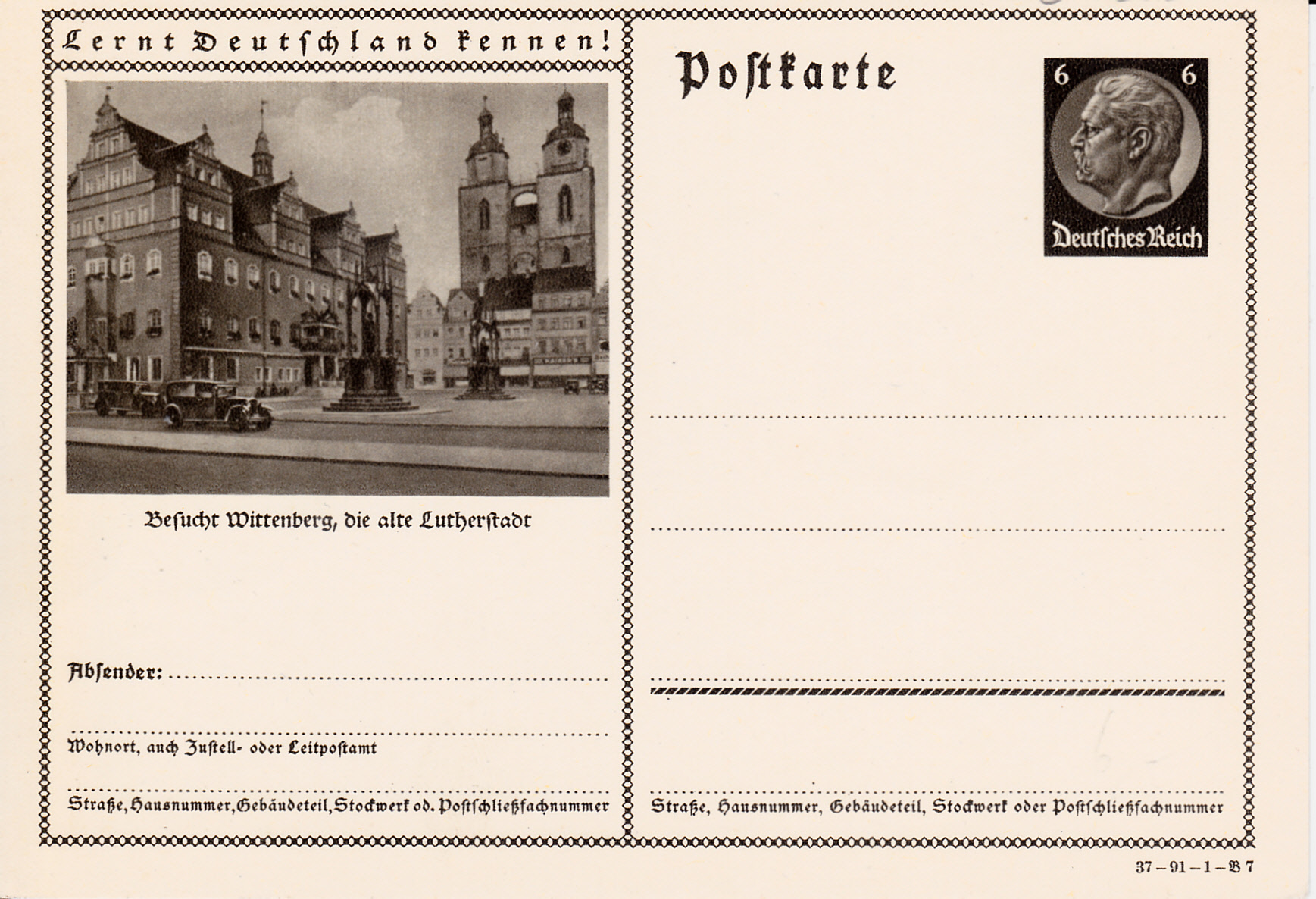 Wittenberg zeigt 1937 erneut auf einer Karte (Serie 91 Bild 7) das aus den Vorjahren bekannten Motiv mit dem Marktplatz.