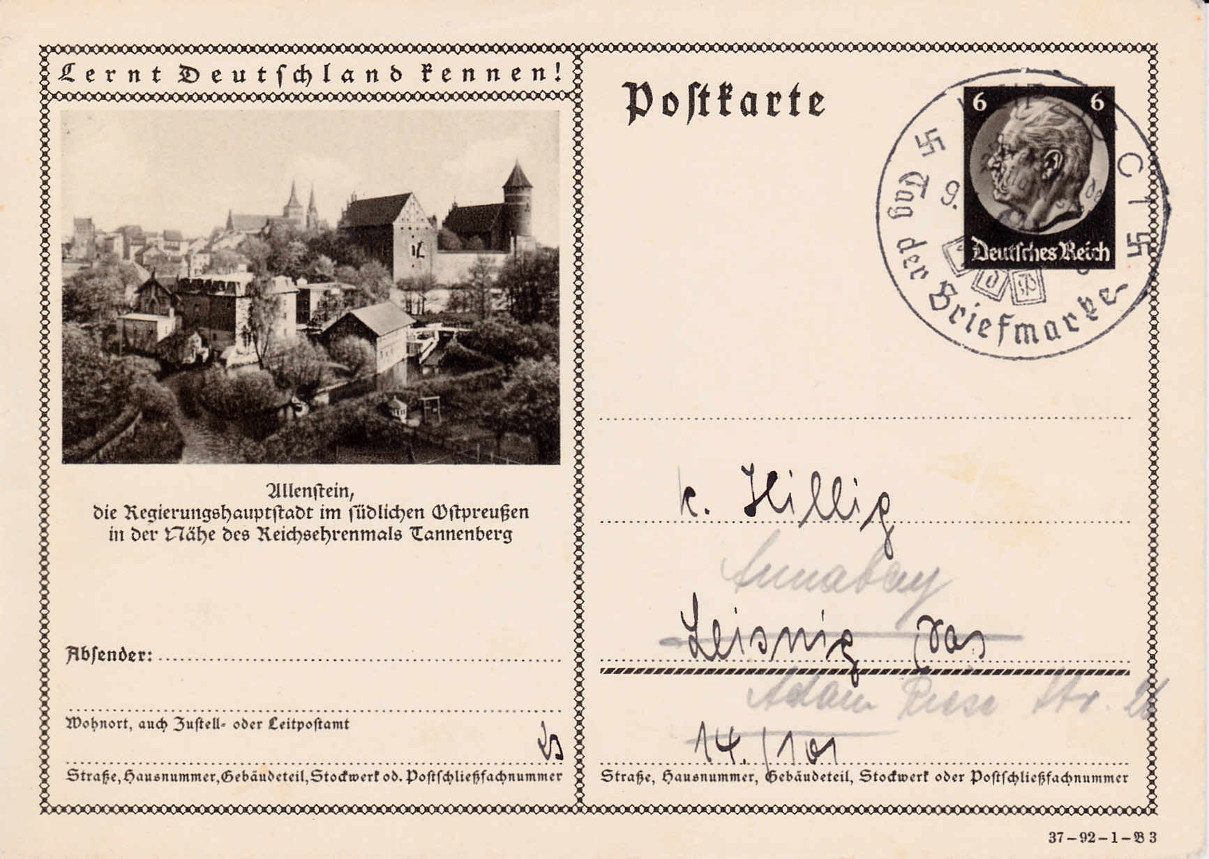 Das Foto auf dieser Karte (Serie 92 Bild 3) stellt Allenstein (heute: Olsztyn) mit der Burg und der St.-Jakobus-Kirche vor.