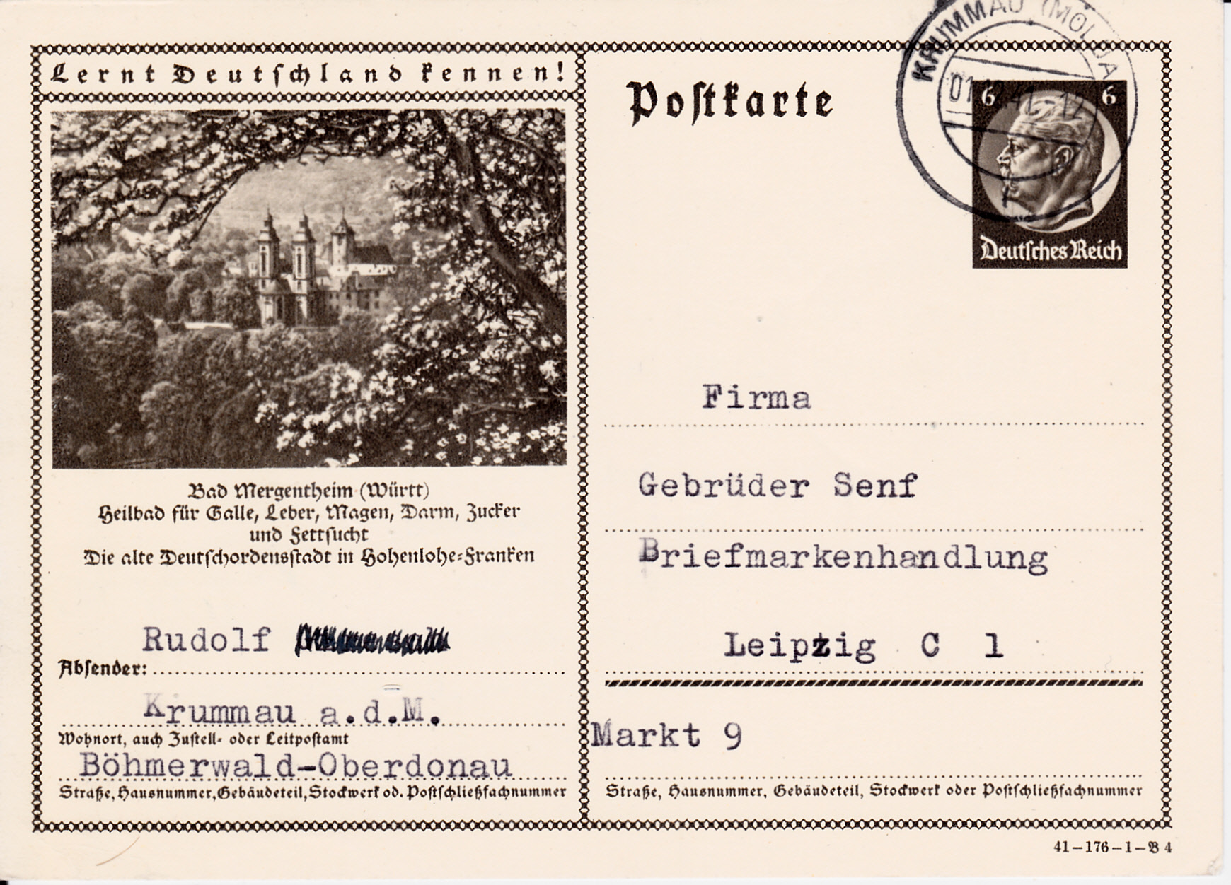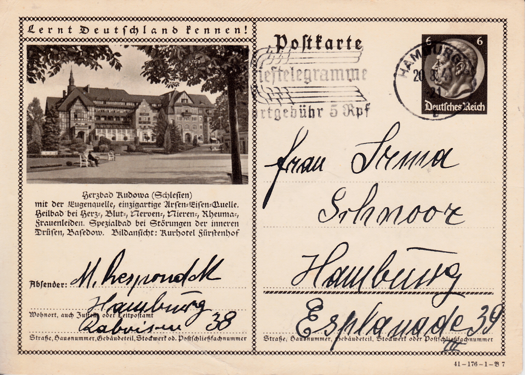 Auf dieser Karte (Serie 175 Bild 8) stellt sich Groß Ullersdorf mit einem Foto als Schwefelbad mit Kurhaus, Sanatorium und Jinderhaus vor. Groß Ullersdorf heißt heute Velké Losiny und ist eine Gemeinde in Tschechien.