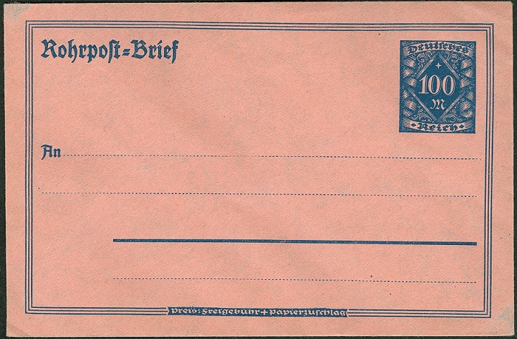 Wegen einer Portoerhöhung veranlasste die Deutsche Reichspost die Ausgabe des RU 11. Im Mai 1923 kam dieser Rohrpostbrief an die Schalter.