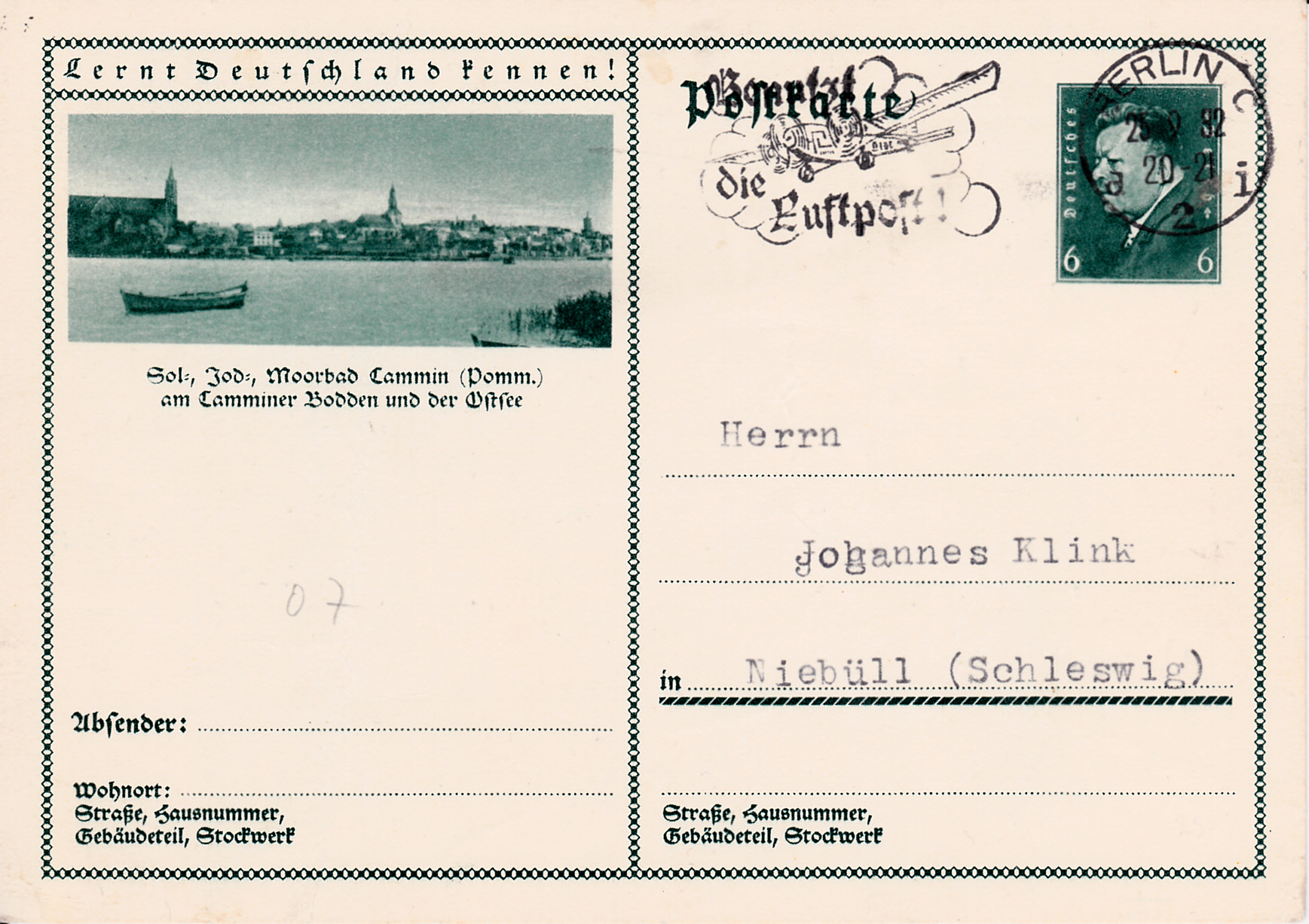 Auch die nächste Karte (MiNr P 202/07) wirbt für das Sol-, Jod- und Moorbad Cammin.