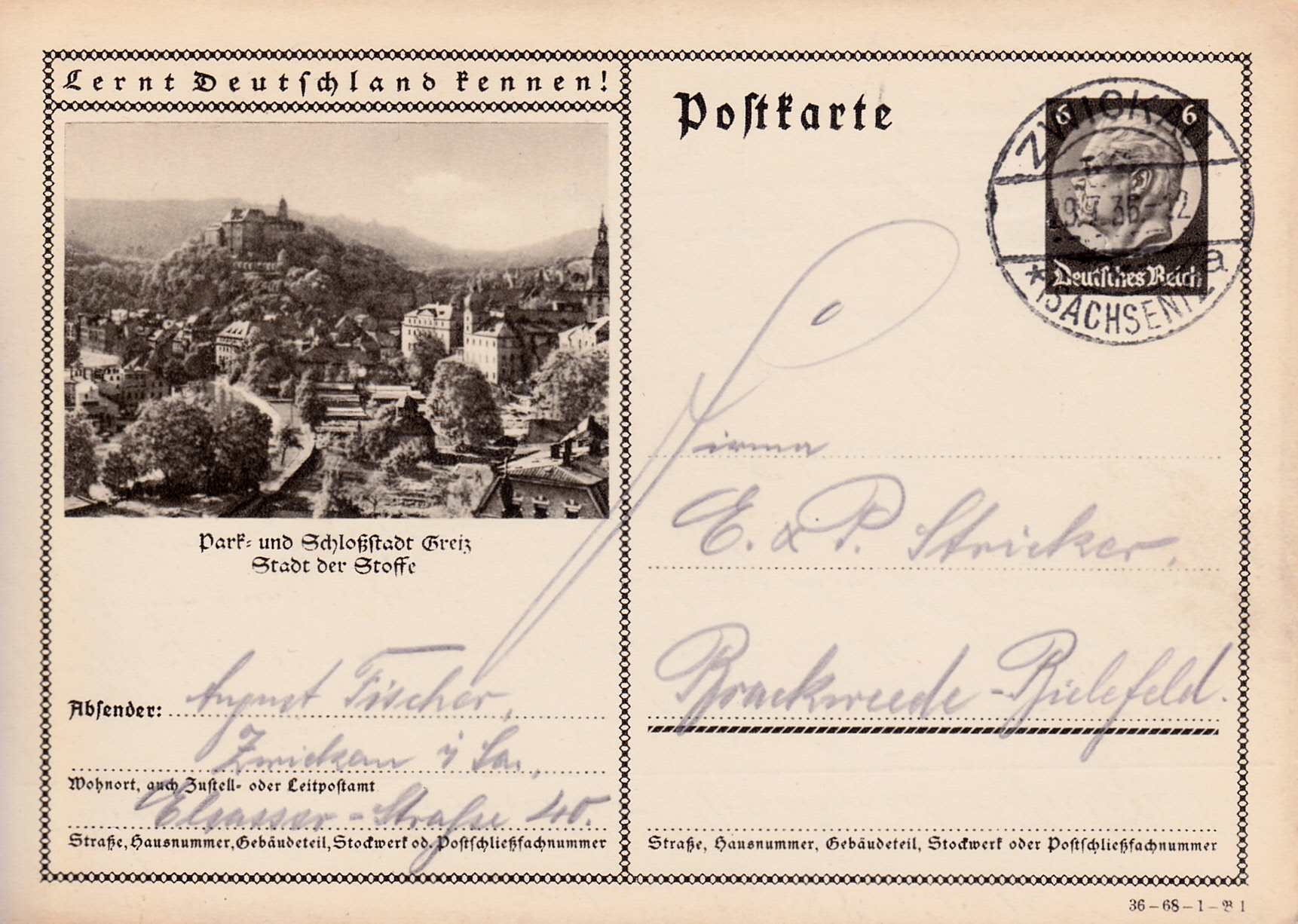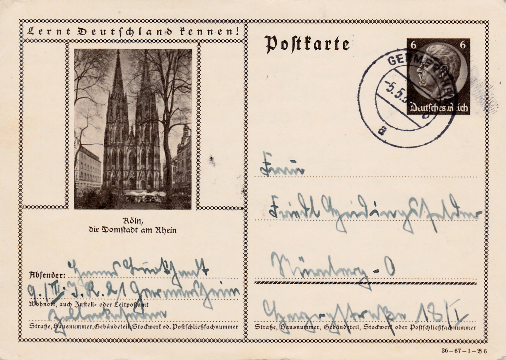 Ich beginne mit der Karte mit dem Druckvermerk 36-67-1-B1 (Ausgabejahr 1936-Serie 67-Druckplatte 1-Bild 1; bei weiteren Karten nenne ich jeweils die Serie und die Bildnummer, die Druckplattennummer nur, wenn es verschiedene Druckplattennummern bei der jeweiligen Serie gibt).