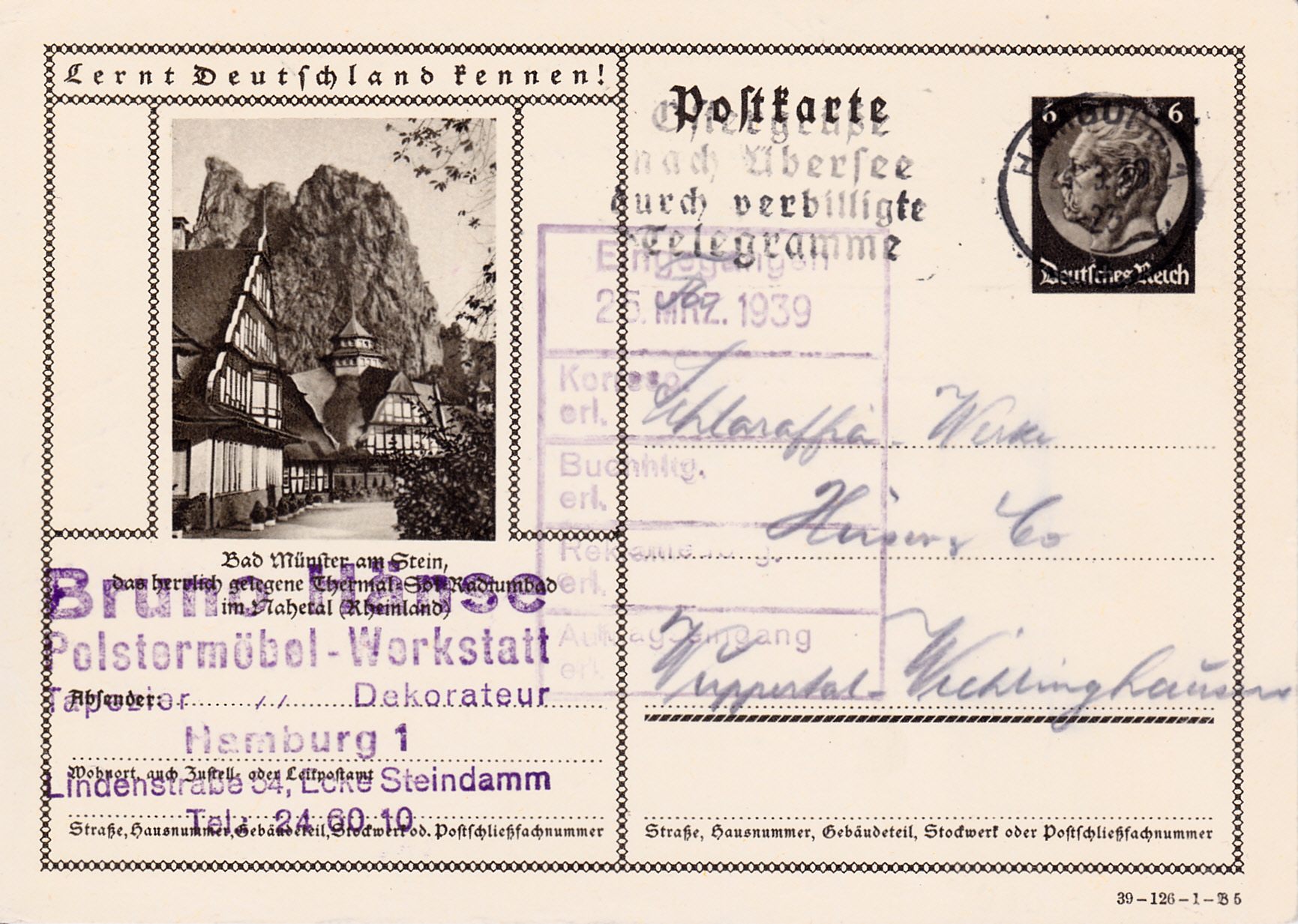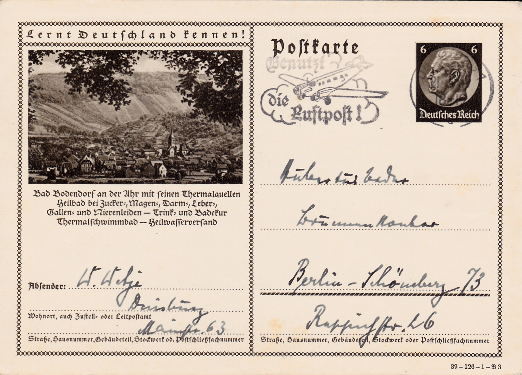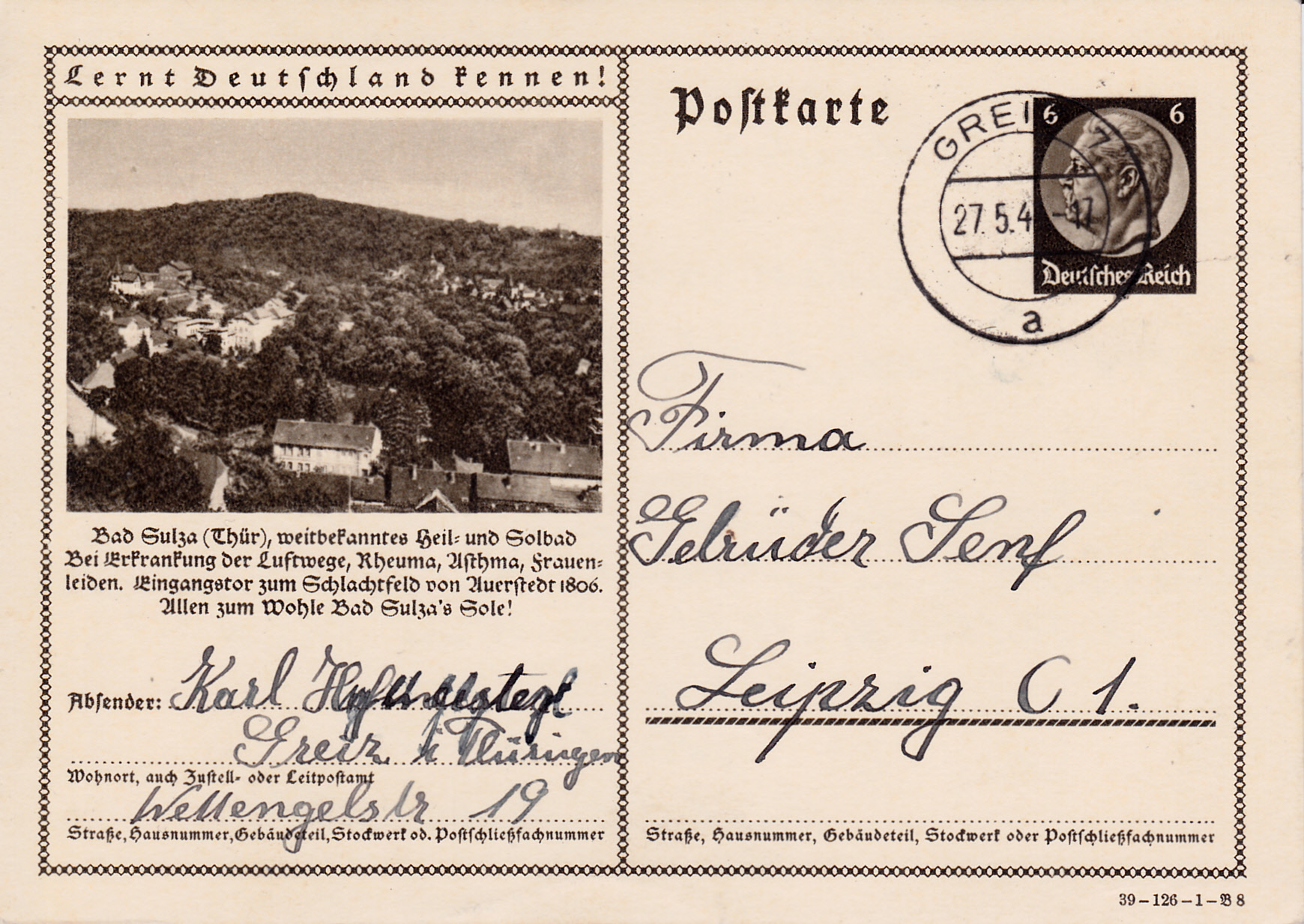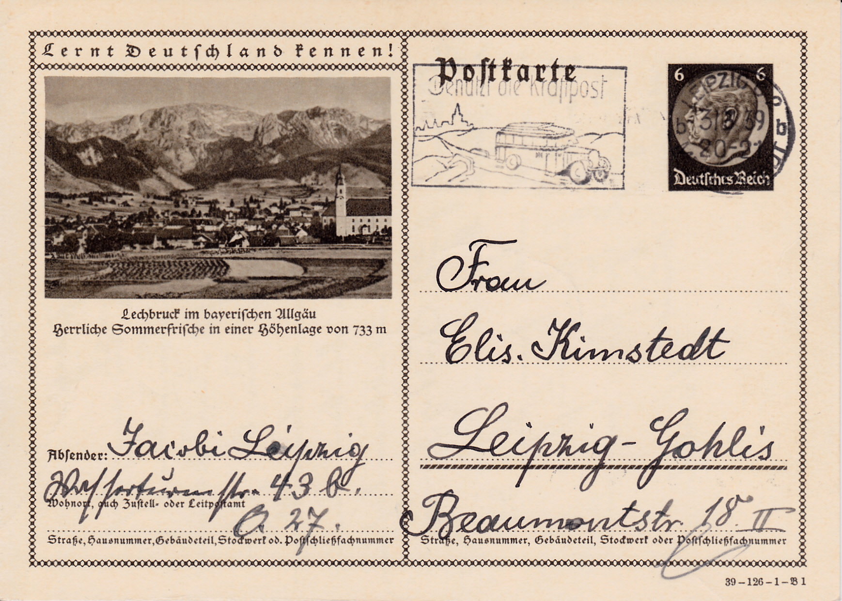 Ich beginne mit der Karte mit dem Druckvermerk 39-126-1-B1 (Ausgabejahr 1939-Serie 126-Druckplatte 1-Bild 1; bei weiteren Karten nenne ich jeweils die Serie und die Bildnummer, die Druckplattennummer nur, wenn es verschiedene Druckplattennummern bei der jeweiligen Serie gibt).