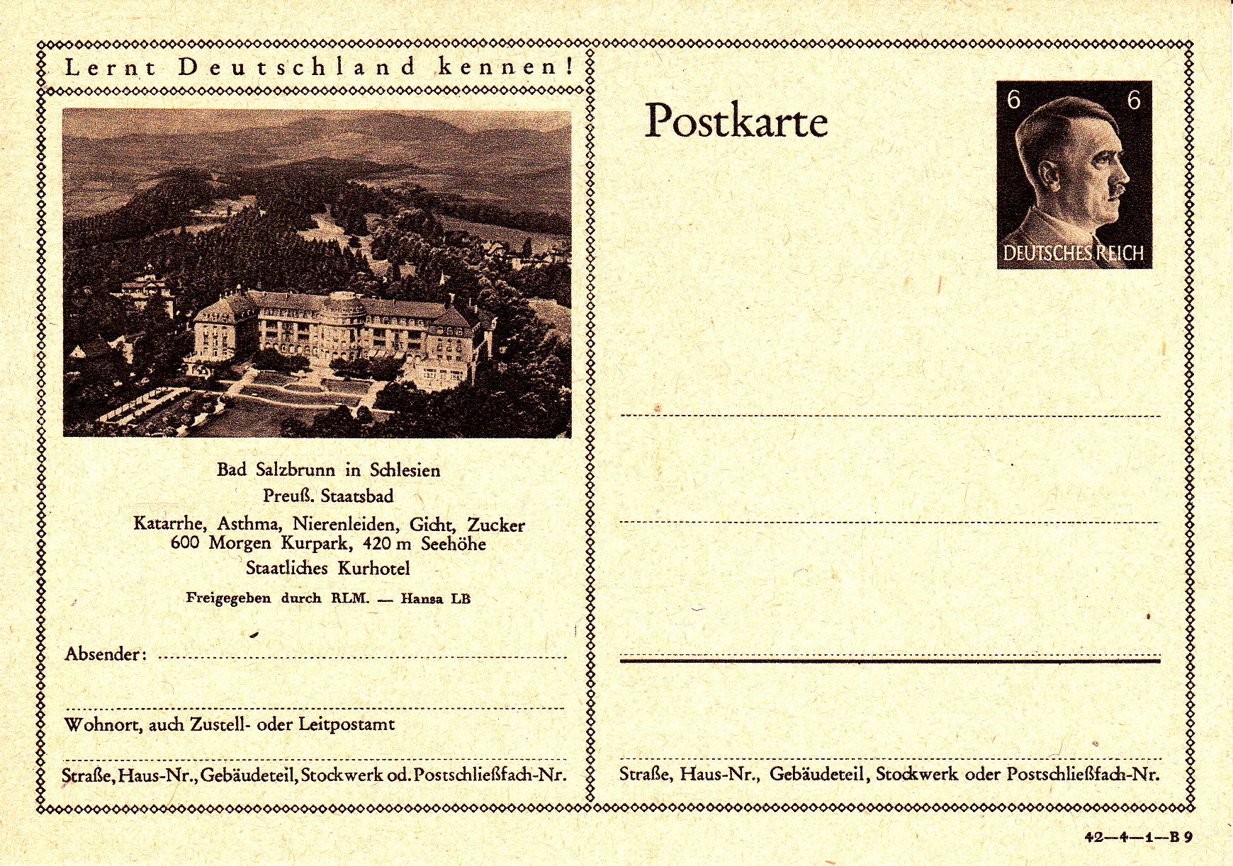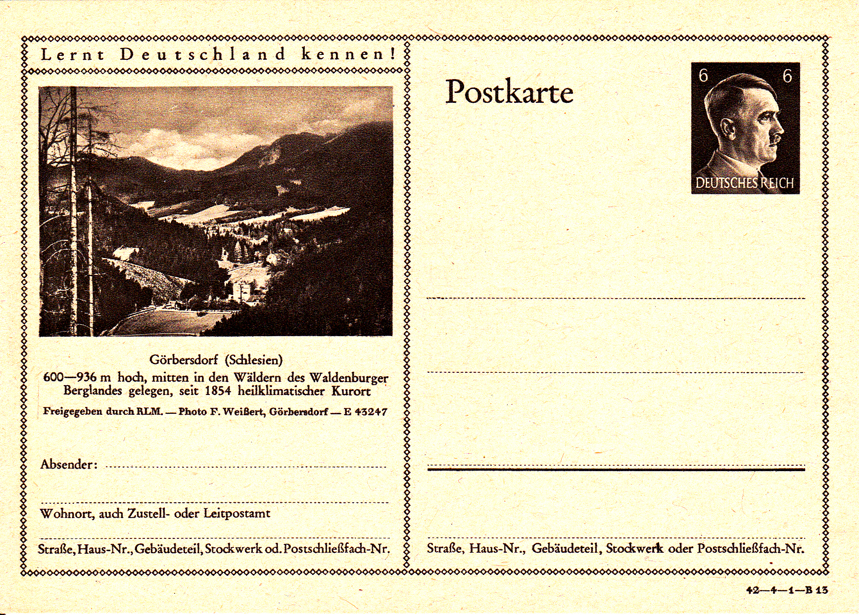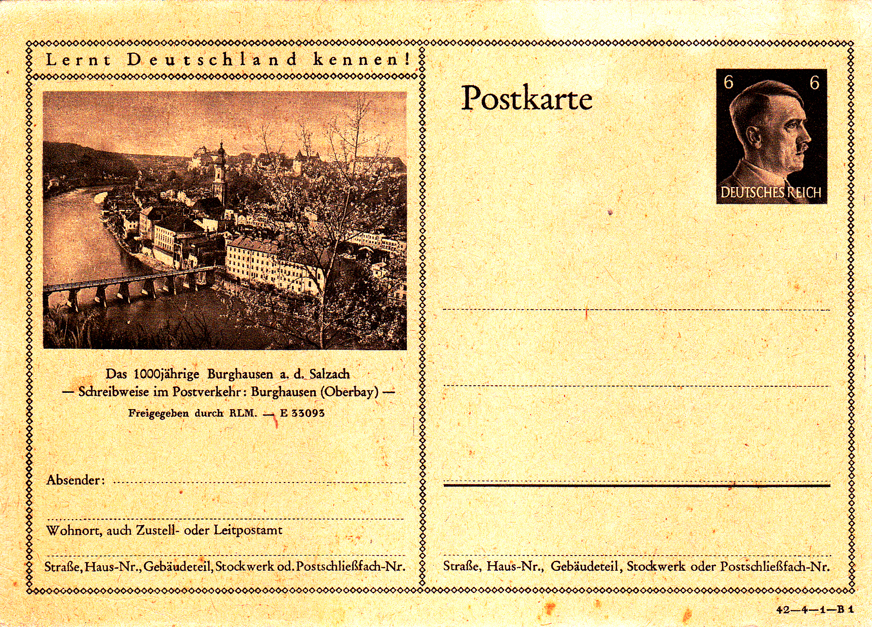 Ich beginne mit der Karte mit dem Druckvermerk 42-4-1-B1 (Ausgabejahr 1942-Serie 4-Druckplatte 1-Bild 1; bei weiteren Karten nenne ich jeweils die Serie und die Bildnummer, die Druckplattennummer nur, wenn es verschiedene Druckplattennummern bei der jeweiligen Serie gibt).