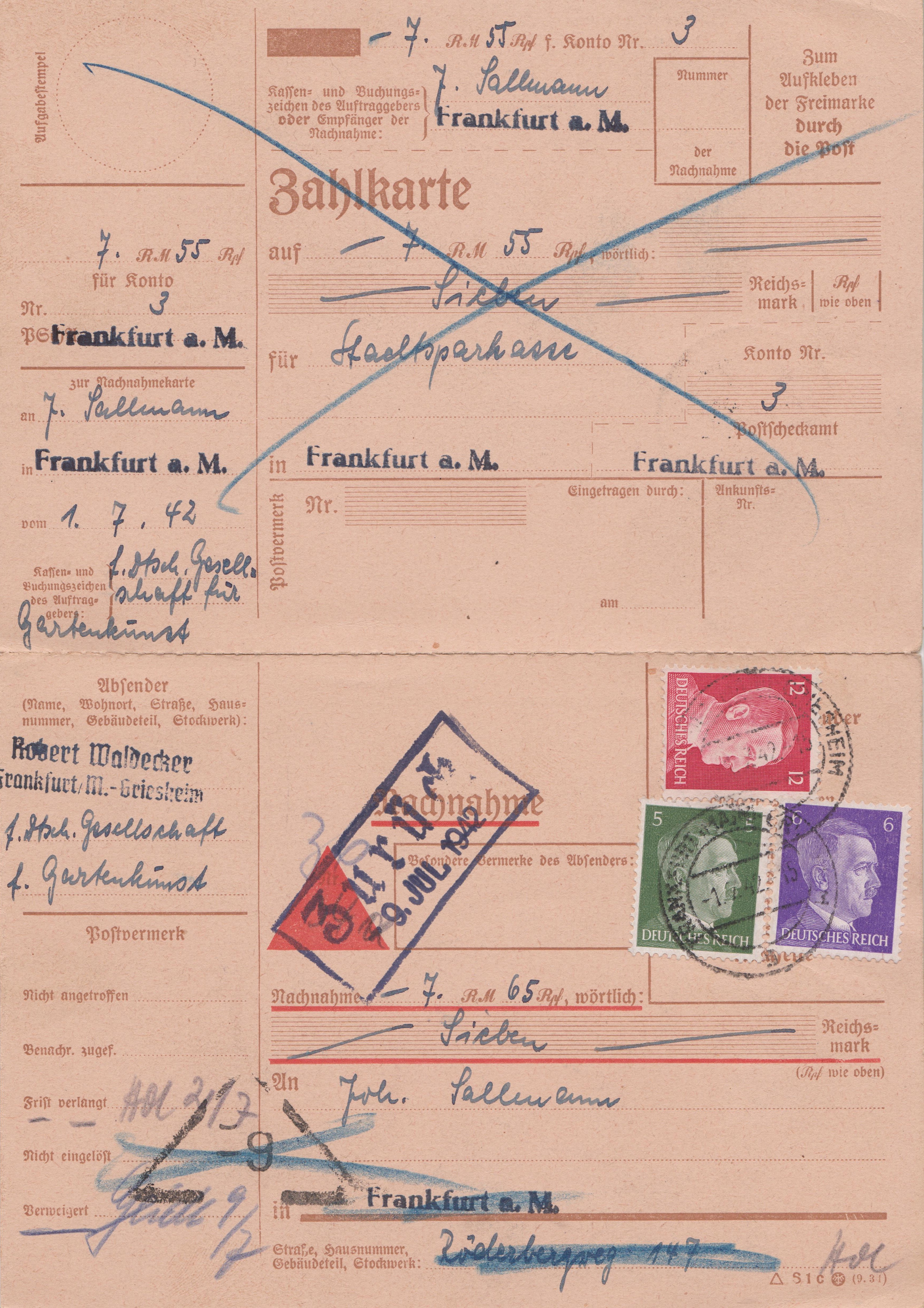 Da der Empfänger die Annahme dieser Sendung verweigerte ging sie am 04.07.1942 an den Absender zurück!