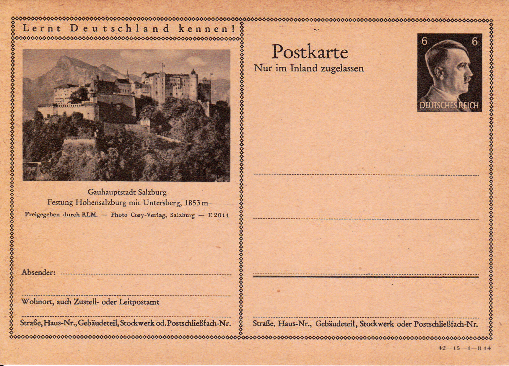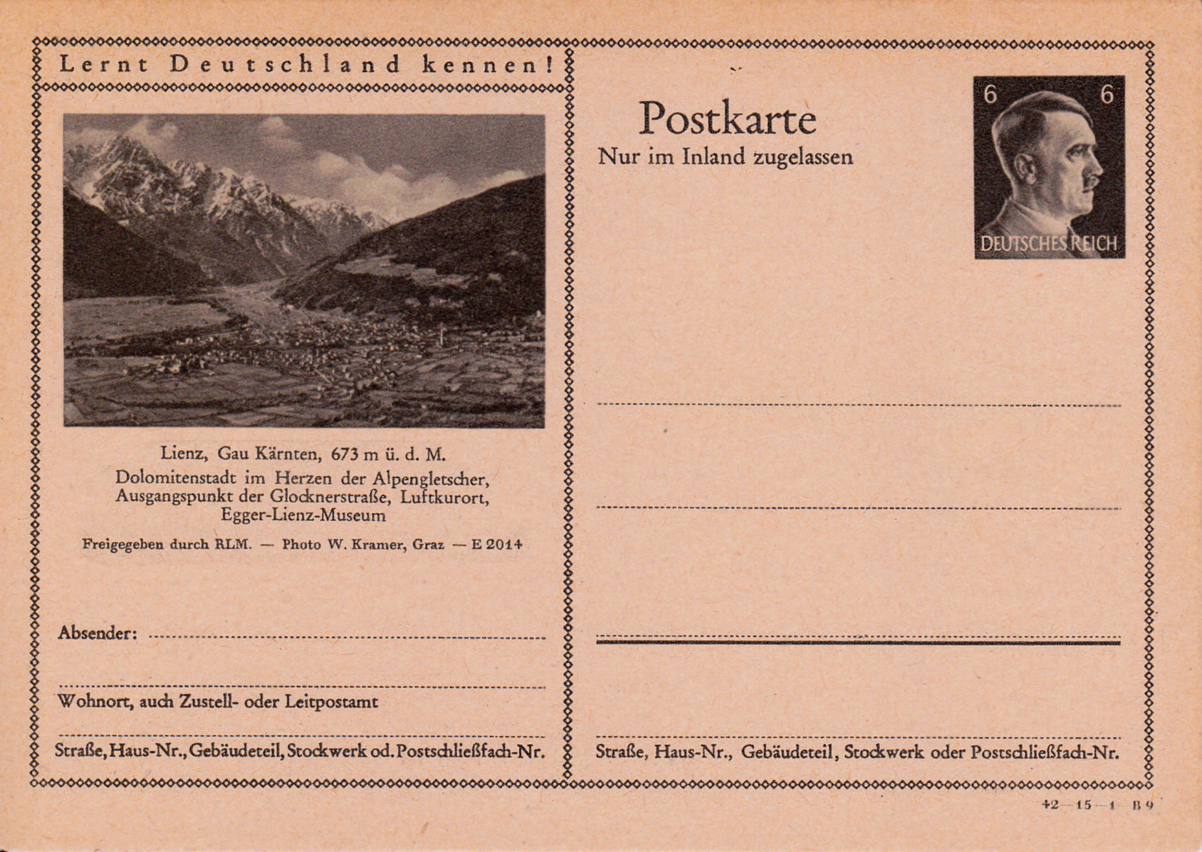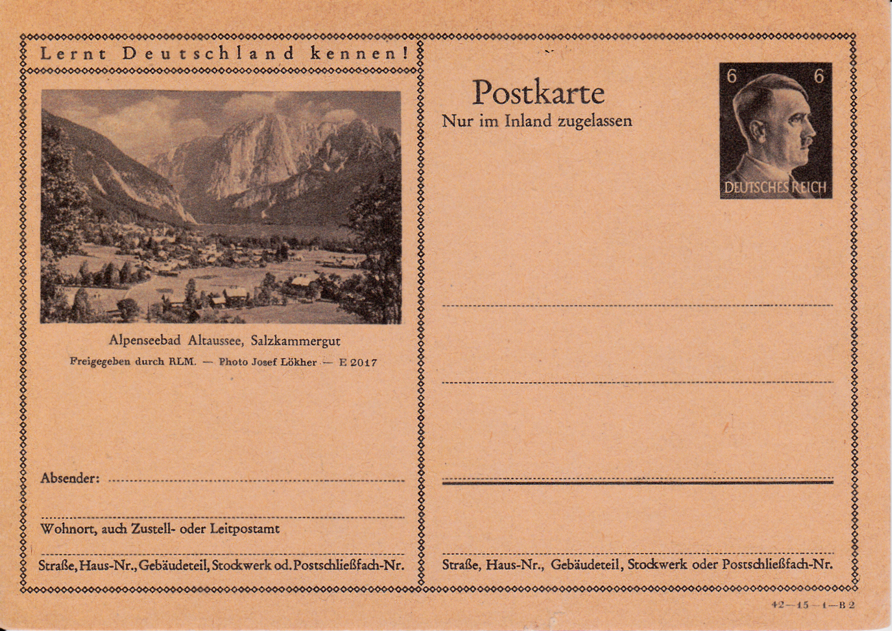 Ich beginne mit der Karte mit dem Druckvermerk 42-15-1-B1 (Ausgabejahr 1942-Serie 15-Druckplatte 1-Bild 1; bei weiteren Karten nenne ich jeweils die Serie und die Bildnummer, die Druckplattennummer nur, wenn es verschiedene Druckplattennummern bei der jeweiligen Serie gibt).