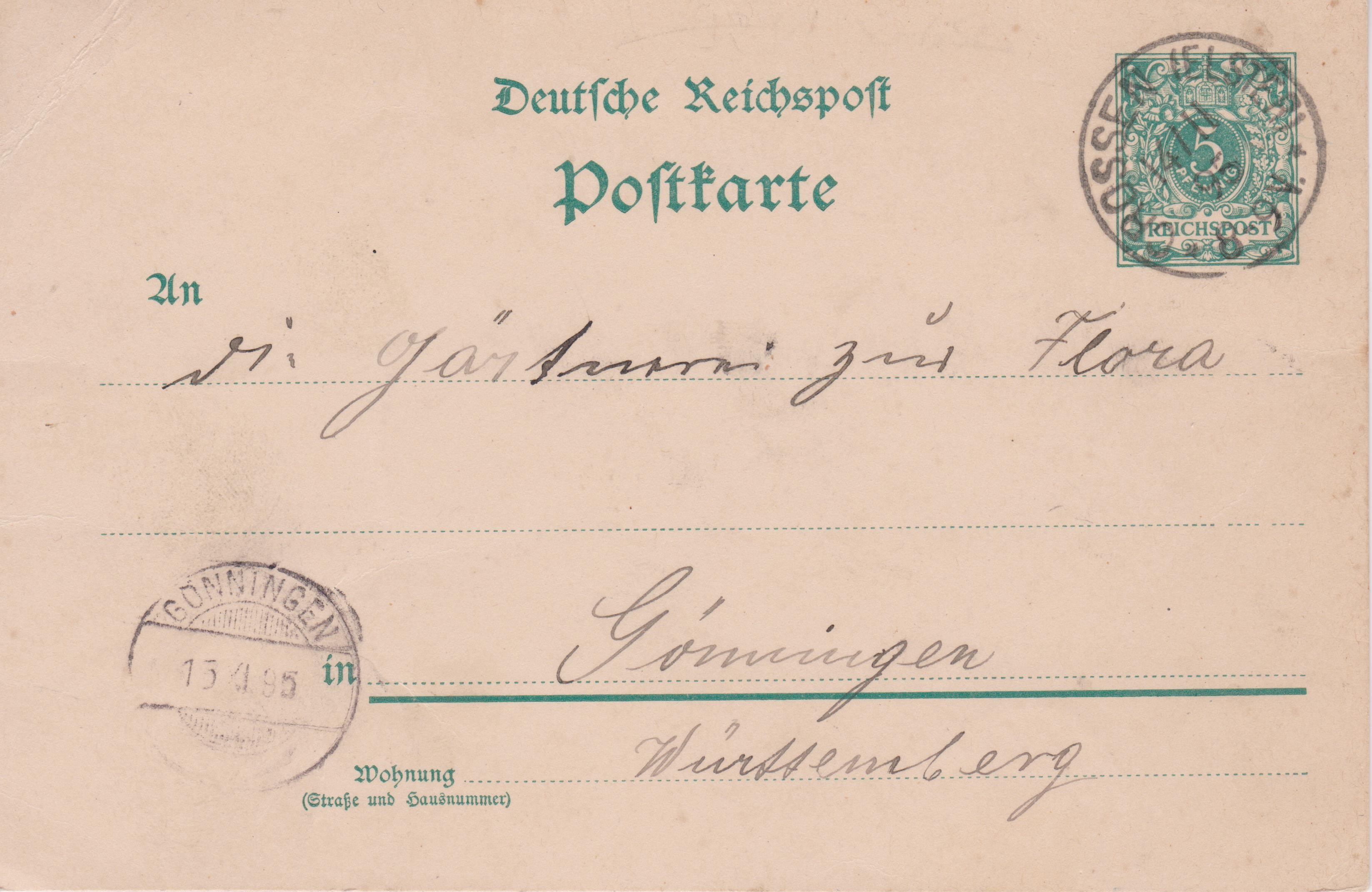 Ganzsache mit Wasserzeichen 95 C, Deutsches Reich P 36 I mit Eindruck 5 Pf Freimarken Wertziffer und Krone im Perlenoval, mit Punktlücke r 5+10: