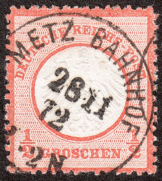 Traumhaft schön abgeschlagen wurde bei diesem Exemplar der Tagesstempel von METZ BAHNHOF am 28.11.1872.