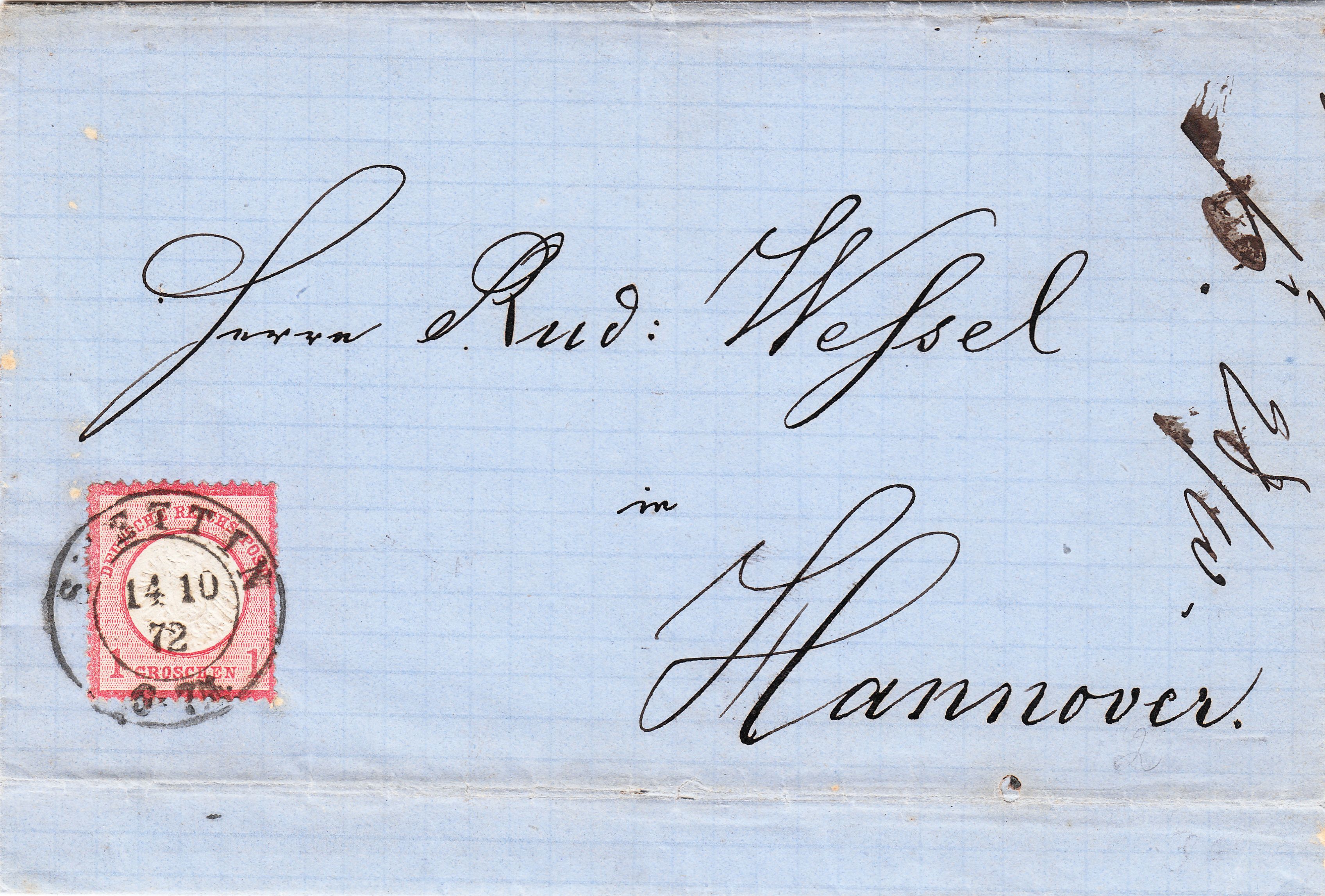 Dieser nach Hannover adressierte Brief wurde am 14.10.1872 in Stettin aufgegeben: