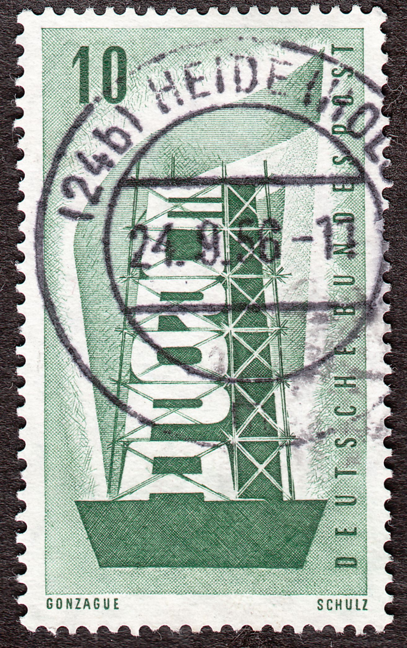 Dieses Postwertzeichen erschien, ausgeführt in Stichtiefdruck, am 15.09.1956 in einer Auflage von 68 Millionen Stück.