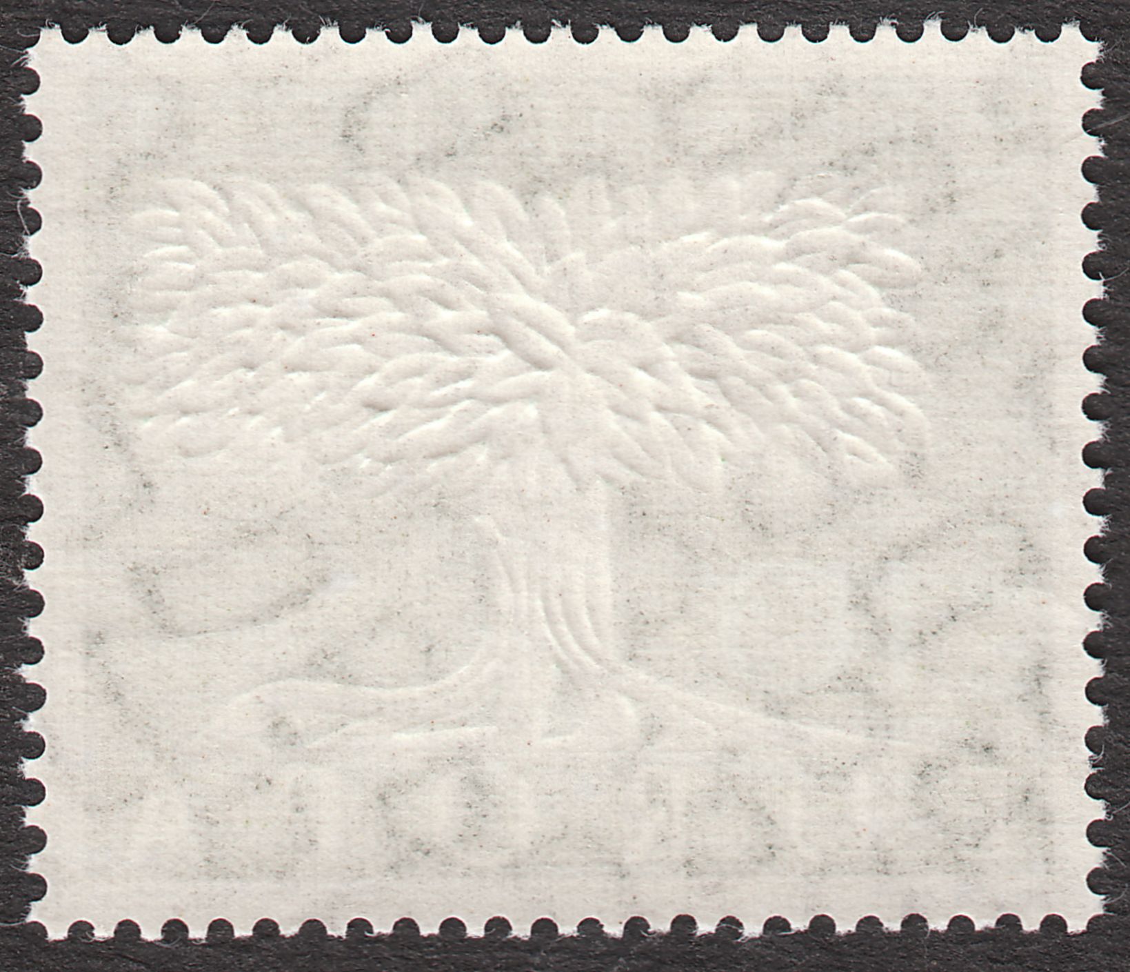 Als Motiv diente ein stilisierter Baum mit sechs Wurzeln entsprechend den sechs Ländern der Montanunion.