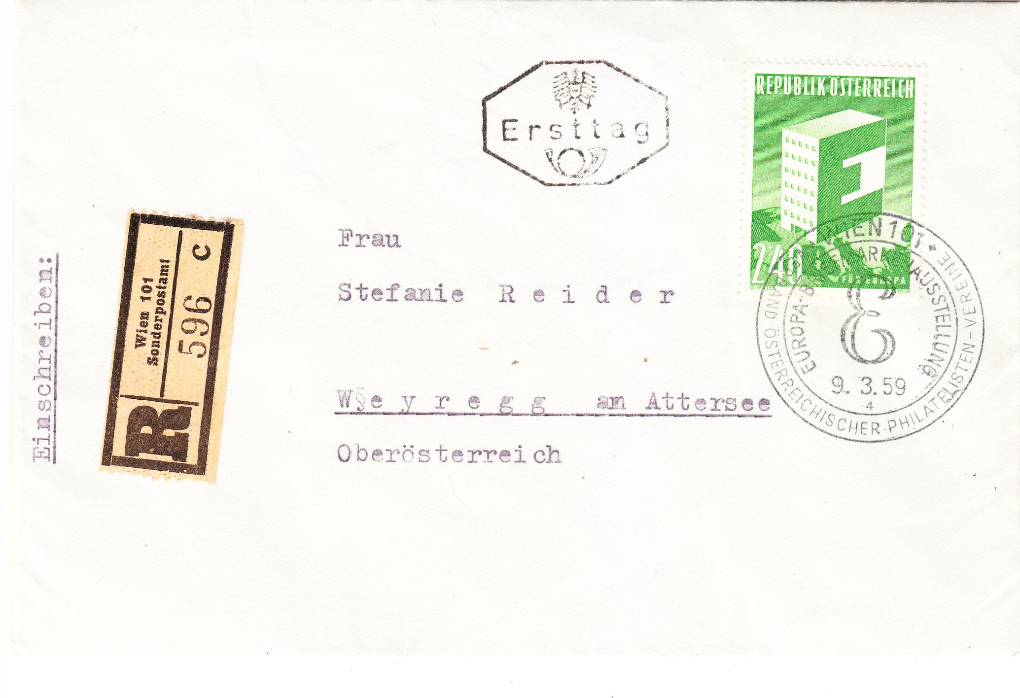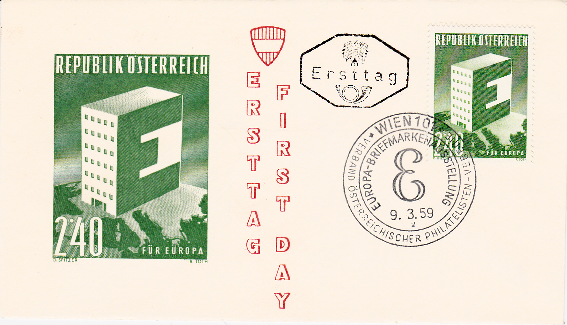 Hier die Europamarke 1959 aus Österreich der Wertstufe zu 2,40 Schilling, katalogisiert als Österreich MiNr. 1059: