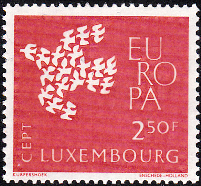 Das gemeinsame Motiv war 1961 eine stilisierte Taube, gebildet aus 19 einzelnen Tauben, entworfen vom niederländischen Künstler Theo Kurpershoek.