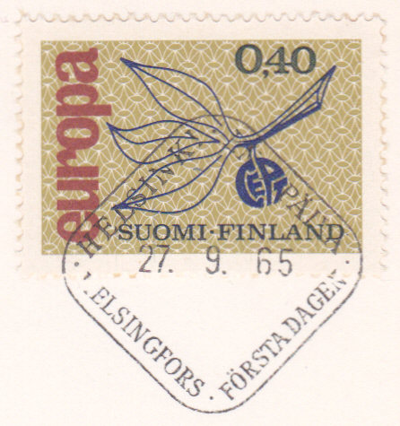 In Finnland ist eine Europamarke 1965 am 27. September 1965 mit dem Gemeinschaftsmotiv "Zweig mit aus den Buchstaben „CEPT“ gebildeter Frucht " erschienen. Hier dieser Wert zu 0,40 M, der in einer Auflage von 2 999 635 Stück erschien.