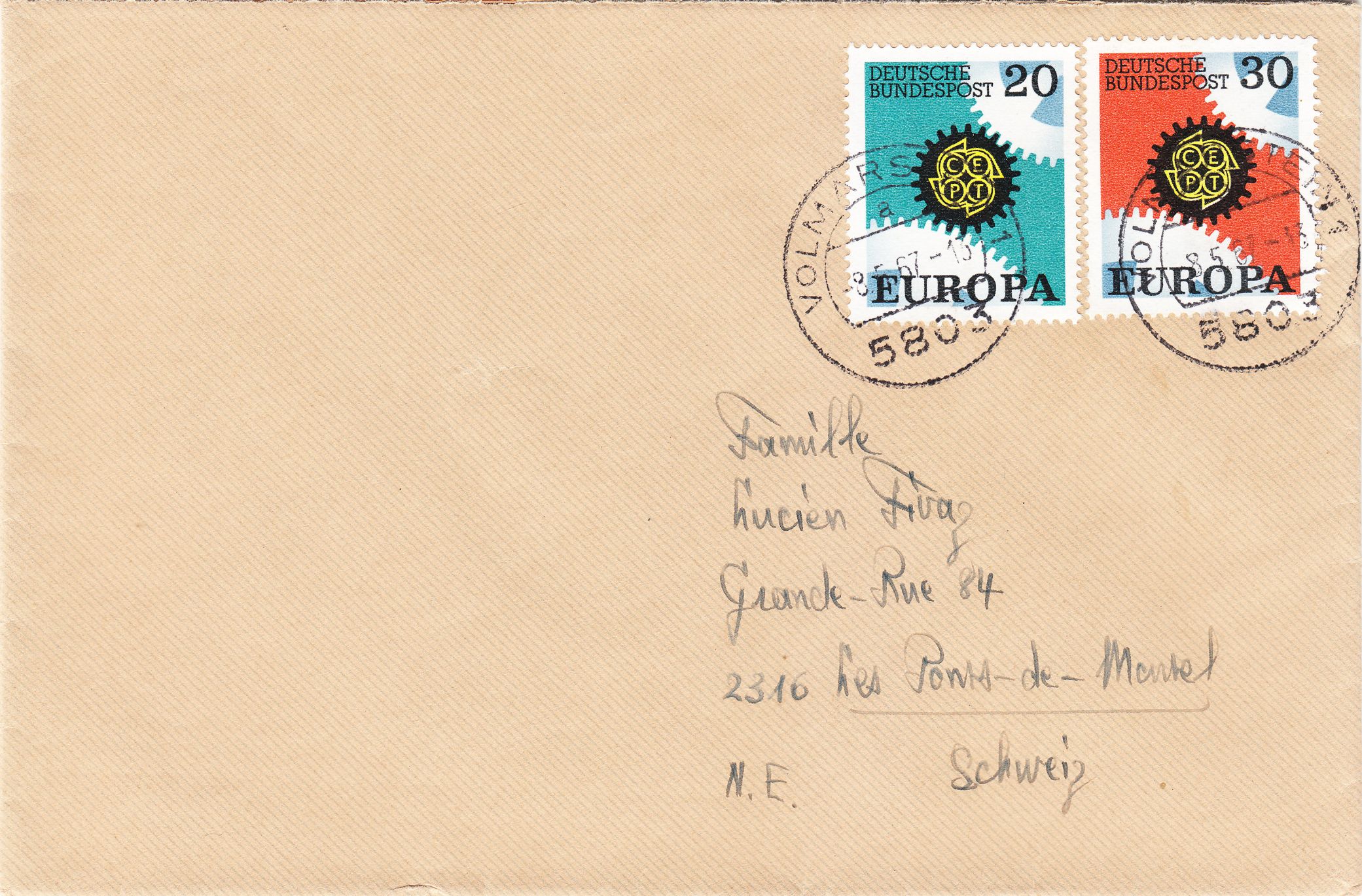 Satzbrief der Europamarken 1967, am 08.05.1967 portogerecht als Auslandsbrief, gelaufen in die Schweiz: