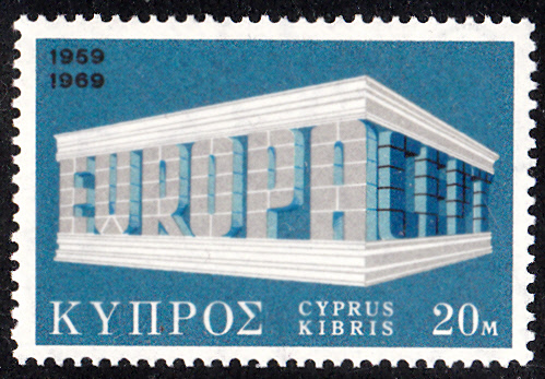 In Zypern erschienen die Europamarken 1969 am 28. April 1969. Hier eine Marke zu 20 Mills mit dem Gemeinschaftsmotiv "„EUROPA“ und „CEPT“ in Tempelform", die in einer Auflage von 531 984 Stück erschien.