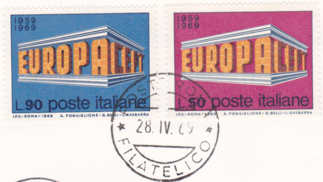 1969 erschienen zum 10-jährigen Jubiläum der CEPT insgesamt 48 Europamarken in 26 Ländern, dabei erstmals in Jugoslawien sowie im Vatikan. Als einheitliches Motiv diente ein antiker Tempel, gebildet aus den Wörtern EUROPA und CEPT, entworfen von Luigi Gashara und Giorgio Belli aus Italien.