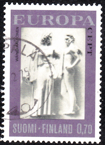 In Finnland ist eine Europamarke 1974 am 29. April 1974 zu dem Gemeinschaftsthema "Skulpturen" erschienen. Hier dieser Wert zu 0,70 M mit dem Relief von Wäinö Aaltonen (1894-1966) "Freiheitsgöttin bekränzt die Jugend mit Siegerkranz", der in einer Auflage von 3 000 000 Stück erschien.