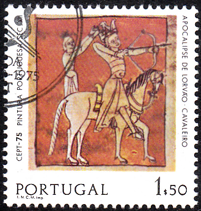 am 26. Mai 1975. Hier die Marke zu 1,50 Escudo mit die "Die Reiter der Apokalypse" einer Buchmalerei aus dem Lorvao-Manuskript. Die Marke gibt es in zwei Papierarten: x = normales Papier, y = Papier mit vorderseitigem Phosphorstreifen (ab 14.1.1976). Die Auflage betrug x = 6 500 000 Stück und y = 3 500 000 Stück.