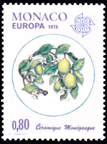 Die Europamarken 1976 zum Gemeinschaftsthema "Kunsthandwerk" erschienen in Monaco am 3. Mai 1976. Hier die Marke zu 0,80 Franc mit der Abbildung eines Keramikziertellers aus dem 20. Jahrhundert. Die Auflage der Marke betrug 888 177 Stück.