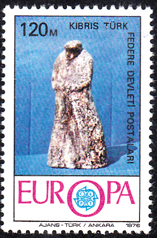 Die Europamarken 1976 zum Gemeinschaftsthema "Kunsthandwerk" erschienen in Türkisch- Zypern am 3. Mai 1976. Hier die Marke zu 120 Mills mit der Keramikstatuette "Der denkende Mann" von Hasan M. Emin, die in einer Auflage von 500 000 Stück erschien.