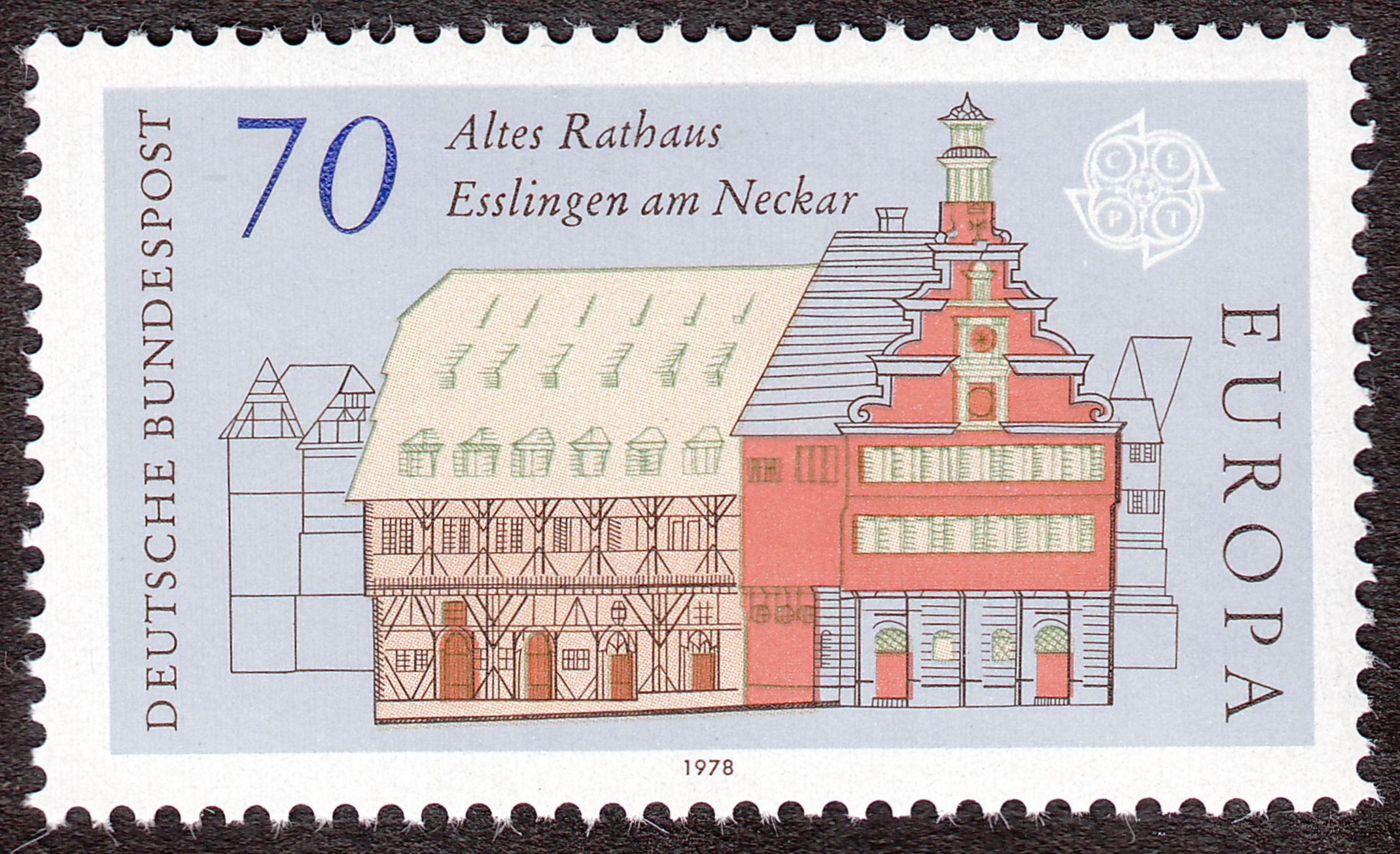 1978 diente das Alte Rathaus Esslingen als Motiv für die Europamarke der Wertstufe zu 70 Pfennig, die in einer Auflage von 31.300.000 Stück erschien und als MiNr. 971 katalogisiert wurde: