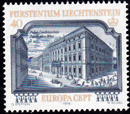 In Liechtenstein erschienen die Europamarken 1978 zum Gemeinschaftsthema "Baudenkmäler" am 2. März 1978. Hier der Wert zu 40 Rappen mit der Abbildung des Palais Liechtenstein in Wien. Die Auflage betrug 2 152 839 Stück.