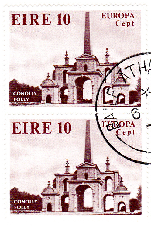 In Irland erschienen am 6. Dezember 1978 die Europamarken 1978 zum Gemeinschaftsthema "Baudenkmäler". Hier ein Paar der Marke zu 10 Pence mit einer Abbildung des Conolly-Obelisk in Castletown in der Grafschaft Kildare (1740). Die Auflage betrug 4 000 000 Stück.